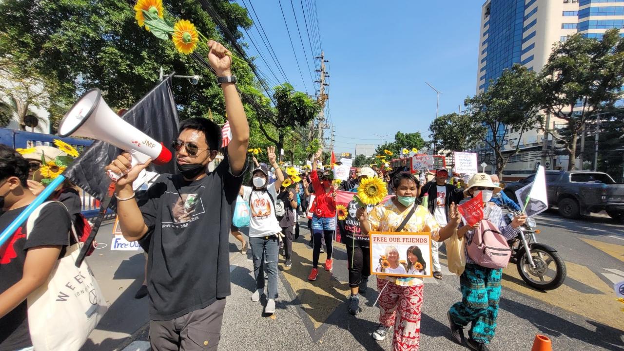 เมื่อเวลา 10.00 น. วันที่ 29 ม.ค. 2566 กลุ่มทะลุฟ้า นำโดย นายจตุภัทร์ บุญภัทรรักษา หรือ ไผ่ ดาวดิน นำมวลชนยืนหยุดขังปล่อยนักโทษการเมือง ที่ปักหลักอยู่บริเวณหน้าหอศิลปวัฒนธรรมแห่งกรุงเทพมหานคร มาตั้งแต่วันที่ 22 ม.ค. 2566 เดินทางมารวมตัวกันเพื่อทำกิจกรรมเดินขบวนเชิงสัญลักษณ์ “ยื่น หยุด ขัง” เพื่อสนับสนุนการยื่นหนังสือขอประกันตัวกลุ่มราษฎรที่ยังอยู่ในเรือนจำ โดยกลุ่มผู้ชุมนุมออกเดินเท้าจากบริเวณเมเจอร์ ซีนีเพล็กซ์ รัชโยธิน มุ่งหน้าศาลอาญา ถนนรัชดาภิเษก พร้อมกับชูป้ายสัญลักษณ์การชุมนุมต่างๆ อาทิ ดอกทานตะวัน ข้อความคัดค้าน มาตรา 112 ตลอดจนภาพผู้ที่ถูกคุมขังในเรือนจำ และตะโกนข้อเรียกร้องปล่อยนักโทษการเมือง คืนสิทธิ์ประกันตัวยกเลิก 112 โดยมีเจ้าหน้าที่ตำรวจ สน.พหลโยธิน กระจายกำลังเฝ้าระวังเหตุ
