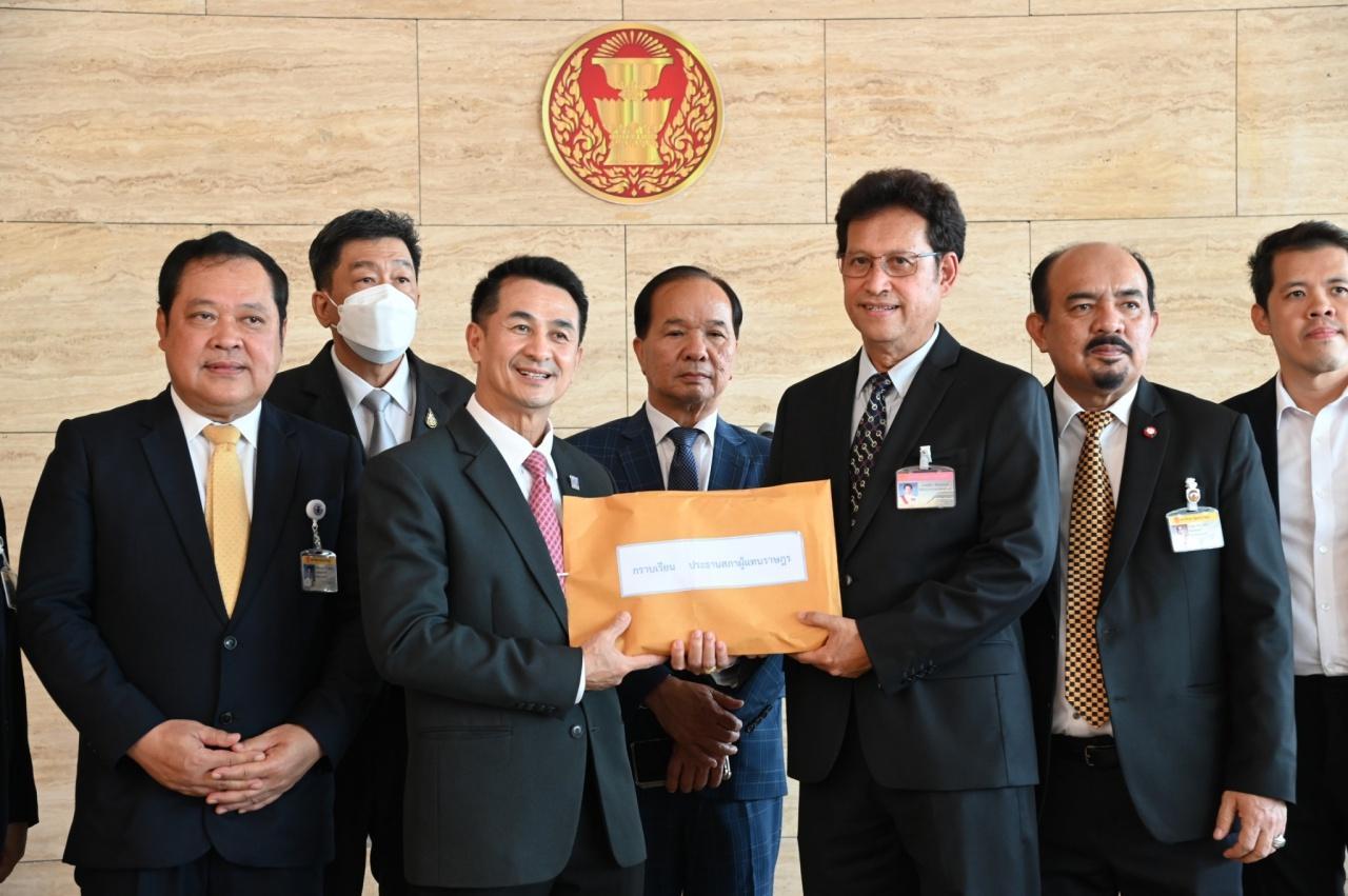 นพ.ชลน่าน นำทีมพรรคฝ่ายค้าน ยื่นหนังสือถึงประธานสภาฯ ให้ส่งเรื่องไปยังศาลรัฐธรรมนูญ วินิจฉัยความเป็นรัฐมนตรีของ “ศักดิ์สยาม ชิดชอบ” สิ้นสุดลงตามรัฐธรรมนูญหรือไม่ ปมซุกหุ้นกว่า 100 ล้าน
