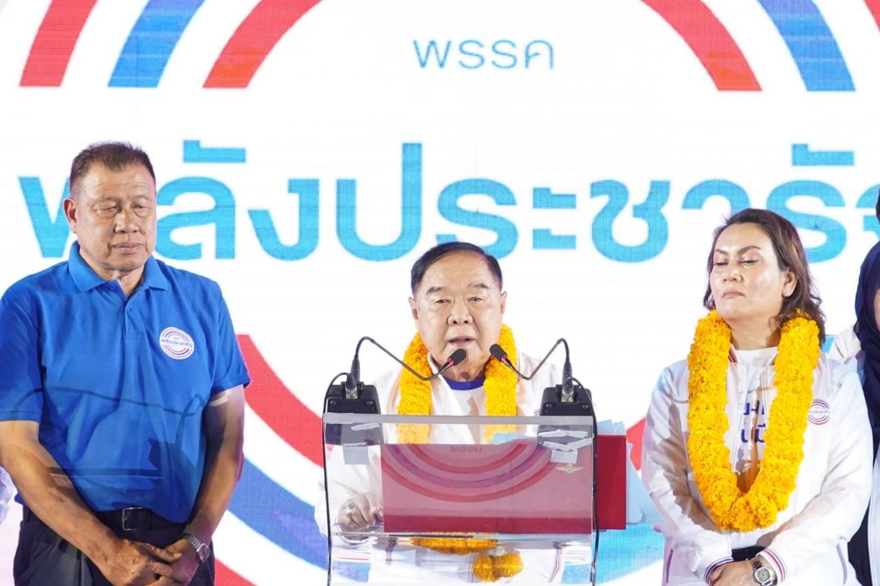 วันที่ 13 กุมภาพันธ์ 2566 ที่ลานรัตนกาญจน์ อ.เมือง จ.กาญจนบุรี พล.อ.ประวิตร วงษ์สุวรรณ รองนายกรัฐมนตรี ในฐานะหัวหน้าพรรคพลังประชารัฐ พร้อมด้วย นายสันติ พร้อมพัฒน์ รัฐมนตรีช่วยว่าการกระทรวงการคลัง ในฐานะเลขาธิการพรรค นายสนธิรัตน์ สนธิจิรวงศ์ พร้อมด้วยคณะกรรมการบริหารพรรค ว่าที่ผู้สมัครสมาชิกสภาผู้แทนราษฎร (ส.ส.) และ พล.อ.ณัฐ อินทรเจริญ คณะทำงานของ พล.อ.ประวิตร ที่ร่วมดูแลรับผิดชอบพื้นที่ จ.กาญจนบุรี นอกจากนี้ พล.ต.ท.เรวัช กลิ่นเกษร อดีตผู้บัญชาการตำรวจปราบปรามยาเสพติด ยังเดินทางมาให้กำลังใจด้วย