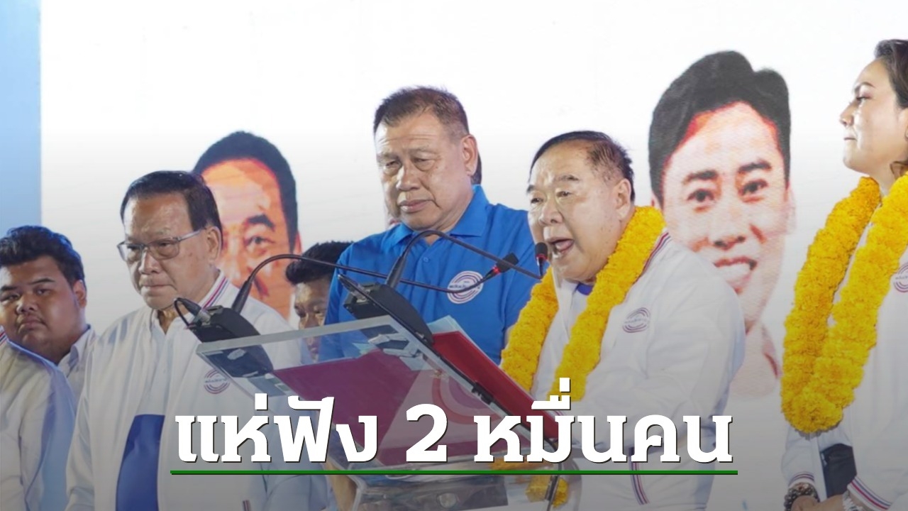 พปชร. จัดปราศรัยใหญ่ เปิดตัวว่าที่ผู้สมัคร ส.ส.กาญจนบุรี แห่ฟังแน่นลาน 2 หมื่นคน “ซ้อเจน” ลั่น ขอเหมา 6 ที่นั่ง “สนธิรัตน์” หยอด พปชร.เป็นพรรคคนกาญจน์ “บิ๊กป้อม” ขออย่าเลือกคนไม่มีอุดมการณ์ คัดเกรดเอมาให้แล้ว