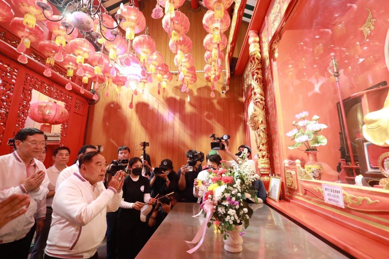 เมื่อเวลา 14.10 น.วันที่ 14 ก.พ. 2566 ที่วัดมังกรกมลาวาส (เล่งเน่ยยี่) เขตป้อมปราบศัตรูพ่าย กทม. พล.อ. ประวิตร วงษ์สุวรรณ รองนายกรัฐมนตรี ในฐานะหัวพรรคพลังประชารัฐ ถือฤกษ์วันวาเลนไทน์ นำผู้บริหารพรรค นายสันติ พร้อมพัฒน์ รมช.คลัง ในฐานะเลขาธิการพรรค นายชัยวุฒิ ธนาคมานุสรณ์ รมว.ดิจิทัลเพื่อเศรษฐกิจและสังคม ในฐานะรองหัวหน้าพรรค นายไพบูลย์ นิติตะวัน รองหัวหน้าพรรค นายวิรัช รัตนเศรษฐ รองหัวหน้าพรรค รวมถึงนายสกลธี ภัททิยกุล กรรมการบริหารพรรค และนางนฤมล ภิญโญสินวัฒน์ เหรัญญิกพรรค ในฐานะดูแลรับผิดชอบพื้นที่กทม.ร่วมกัน และว่าที่ผู้สมัคร ส.ส.กทม. ทั้ง 33 เขต ลงพื้นที่หาเสียงในเขตป้อมปราบศัตรูพ่าย ภายใต้ชื่อกิจกรรม “รวมพลัง ส่งความรักถึงชาวกรุงเทพฯ” เป็นที่แรก โดยนำคณะสักการะสิ่งศักดิ์ภายในวัดเพื่อความสริมงคล