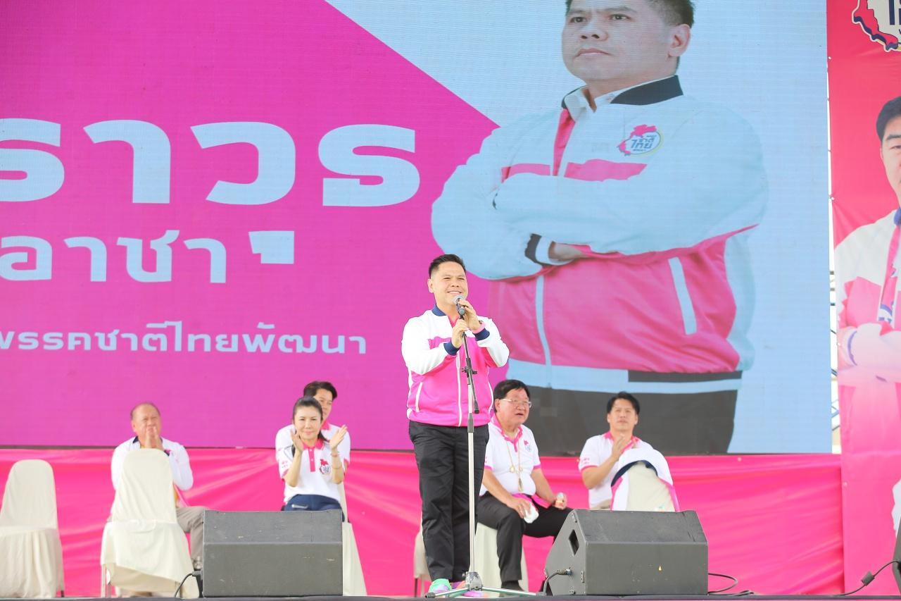 “นโยบายของพรรคชาติไทยพัฒนา หัวใจที่สำคัญที่สุด สำหรับกลุ่มพี่น้องเกษตรกรทุกๆ คน ก็คือจะทำอย่างไรให้มีเงินในกระเป๋ามากขึ้น โดยเฉพาะพื้นที่ทำนาในประเทศไทย 60 ล้านไร่ ทำอย่างไรจะมีพันธุ์ข้าวที่ดี สู้กับพันธุ์ข้าวต่างประเทศที่ราคาแพง ดังนั้น 60 ล้านไร่ เราจะแจกพันธุ์ข้าวที่ดีให้กับเกษตรกรทั่วประเทศ และจะแจกเงินต้นทุนการผลิต 1,000 บาทต่อไร่ รวมถึงขยายเขตไฟฟ้าเพื่อการเกษตร หน่วยละ 2 บาท เพื่อลดต้นทุนการใช้น้ำมันสูบน้ำเข้านา” นายวราวุธ กล่าว