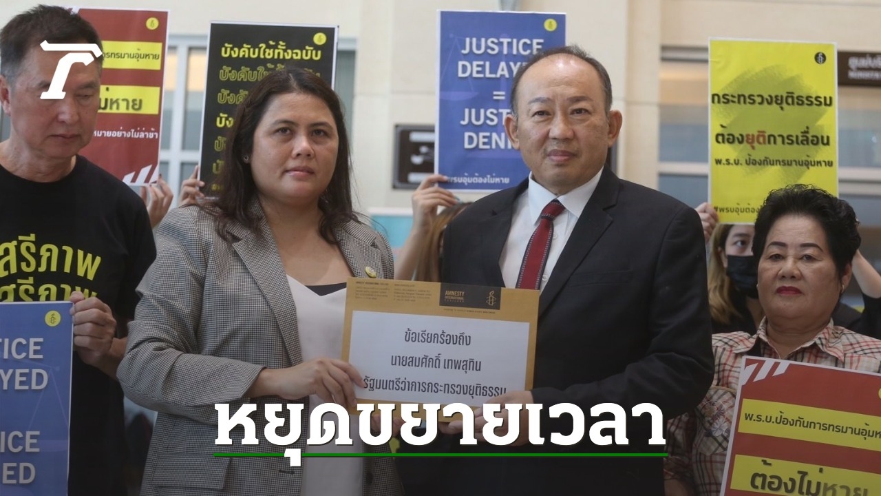 "แอมเนสตี้ไทย" พาญาติเหยื่ออุ้มหาย บุกร้องกระทรวงยุติธรรม จี้ ยุติการขยายระยะเวลาบังคับใช้ พ.ร.บ.ป้องกันและปราบปรามการทรมานและอุ้มหาย หวั่น กฎหมายจะกลายเป็นแค่เสือกระดาษ
