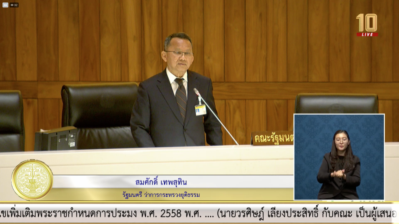 นายสมศักดิ์ เทพสุทิน รมว.ยุติธรรม เป็นผู้ตอบกระทู้ชี้แจงแทนนายกรัฐมนตรี ว่า สาเหตุการเลื่อนใช้ร่าง พ.ร.บ.ดังกล่าว เนื่องจาก สตช.ยังไม่พร้อมในการบังคับใช้กฎหมายใน 4 มาตรา เกี่ยวกับความพร้อมเรื่องอุปกรณ์ เช่น กล้องติดตัวเจ้าหน้าที่ กล้องบันทึกภาพในห้องสอบสวน กล้องติดรถยนต์ จึงขอเลื่อนแค่ 7 เดือน ถ้าบังคับใช้กฎหมายโดยไม่มีความพร้อม จะกระทบต่อการจัดเก็บข้อมูล การบันทึกปากคำอาจไม่บรรลุวัตถุประสงค์ในการป้องกันปราบปรามการกระทำความผิด ส่งผลต่อความปลอดภัยของสาธารณะ เจ้าหน้าที่รัฐก็เสี่ยงถูกดำเนินคดีอาญาด้วย การอ้างรายงานต่างๆ ว่า สตช.มีความพร้อมเรื่องอุปกรณ์ต่างๆ แล้ว แต่รายงานที่ส่งมายังกระทรวงยุติธรรมแจ้งว่ายังไม่มีความพร้อม การเลื่อน 7 เดือนน้อยมาก ขณะนี้ทราบว่า สตช.ได้อนุมัติงบประมาณการจัดซื้ออุปกรณ์กล้องต่างๆ ที่ยังไม่พร้อมเรียบร้อยแล้ว ยืนยันไม่มีการดึงดันกฎหมาย ส่วนการส่ง พ.ร.ก.แก้ไขเพิ่มเติม พ.ร.บ.ป้องกันและปราบปรามการทรมานและการกระทำให้บุคคลสูญหาย มาให้สภาพิจารณาให้ความเห็นชอบนั้น ทราบว่ากำลังเร่งส่งมาให้อยู่ แต่รับรองไม่ได้ว่าเมื่อส่งมาแล้วจะมีการเปิดประชุมสภาให้ความเห็นชอบ พ.ร.ก.ฉบับนี้ทันก่อนปิดสมัยประชุมหรือไม่.