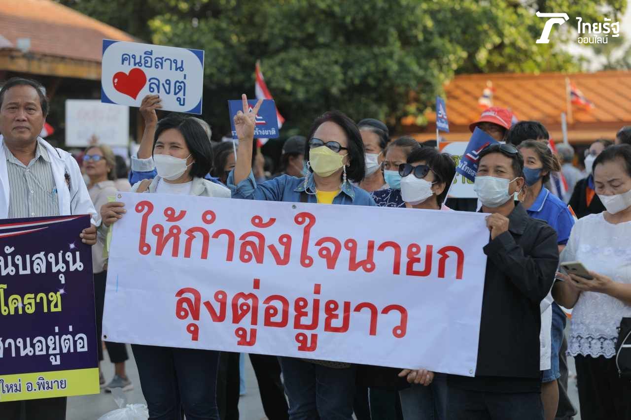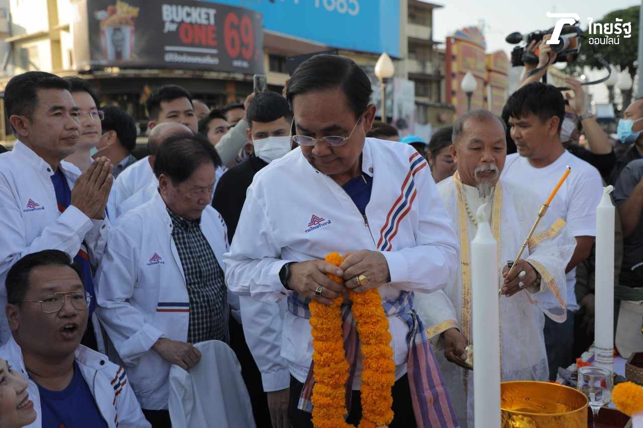 ทั้งนี้ ก่อนหน้าจะขึ้นเวทีปราศรัยใหญ่ พลเอกประยุทธ์ ได้ร่วมทำพิธีบวงสรวงอนุสาวรีย์ท้าวสุรนารี ที่ลานย่าโมเพื่อความเป็นสิริมงคล