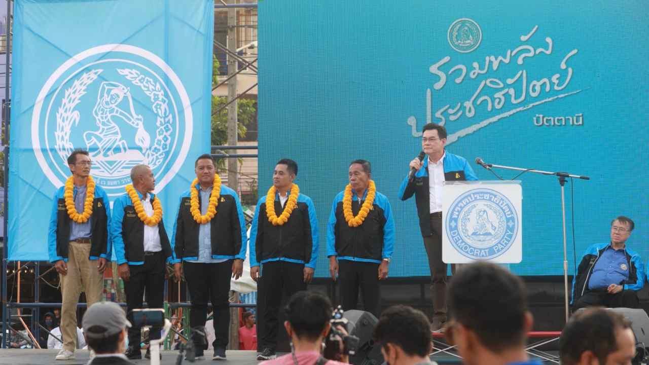 5 มี.ค. 2566 เมื่อเวลา 17.30 น. สนามข้างโรงแรมซีเอส ปัตตานี นายจุรินทร์ ลักษณวิศิษฏ์ หัวหน้าพรรคประชาธิปัตย์ รองนายกรัฐมนตรี และรัฐมนตรีว่าการกระทรวงพาณิชย์ นำเปิดปราศรัย “ปัตตานี สันติภาพ สู่สันติสุข” ที่บริเวณสนามข้างโรงแรมซีเอส ปัตตานี ร่วมกับ นายบัญญัติ บรรทัดฐาน อดีตหัวหน้าพรรค นายนิพนธ์ บุญญามณี รองหัวหน้าพรรค น.ส.วทันยา บุนนาค ประธานคณะทำงานนวัตกรรมการเมือง พรรคประชาธิปัตย์ และร่วมกันเปิดตัวผู้สมัคร จังหวัดปัตตานี 5 เขต ประกอบด้วย ผู้สมัคร เขต 1 สนิท นาแว ผู้สมัคร เขต 2 มนตรี ดอเลาะ ผู้สมัคร เขต 3 ดร.ยูนัยดี วาบา ผู้สมัคร เขต 4 ส.อ.สุริยา กูทา และ ผู้สมัคร เขต 5 ซึ่งเป็นเขตที่ กกต. ประกาศเพิ่มเติม คือ คอเลฟ เจ๊ะนา