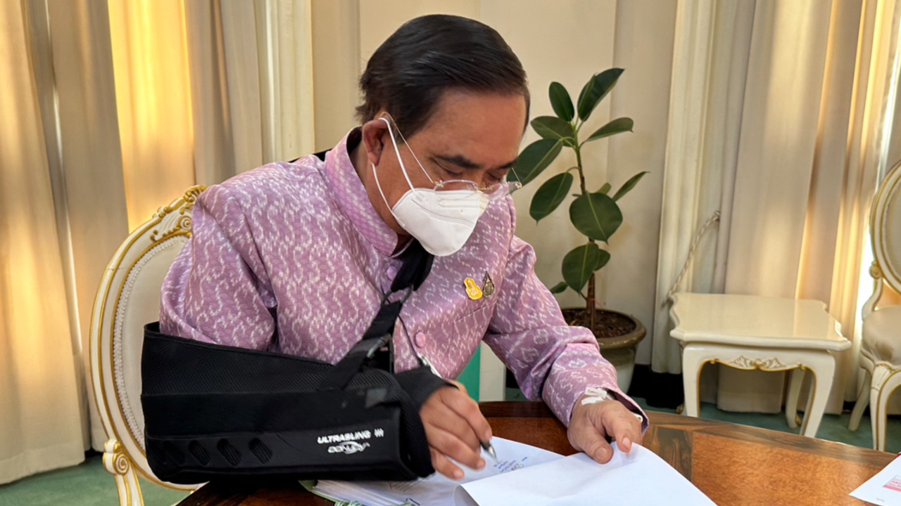 “บิ๊กตู่” พล.อ.ประยุทธ์ จันทร์โอชา นายกรัฐมนตรีและรมว.กลาโหม คล้อง Arm Sling นั่งหัวโต๊ะ ประชุม ครม. แต้งกิ้วสื่อฯ ยอมรับ ยังเจ็บแผลอยู่ แต่ดีขึ้นแล้ว