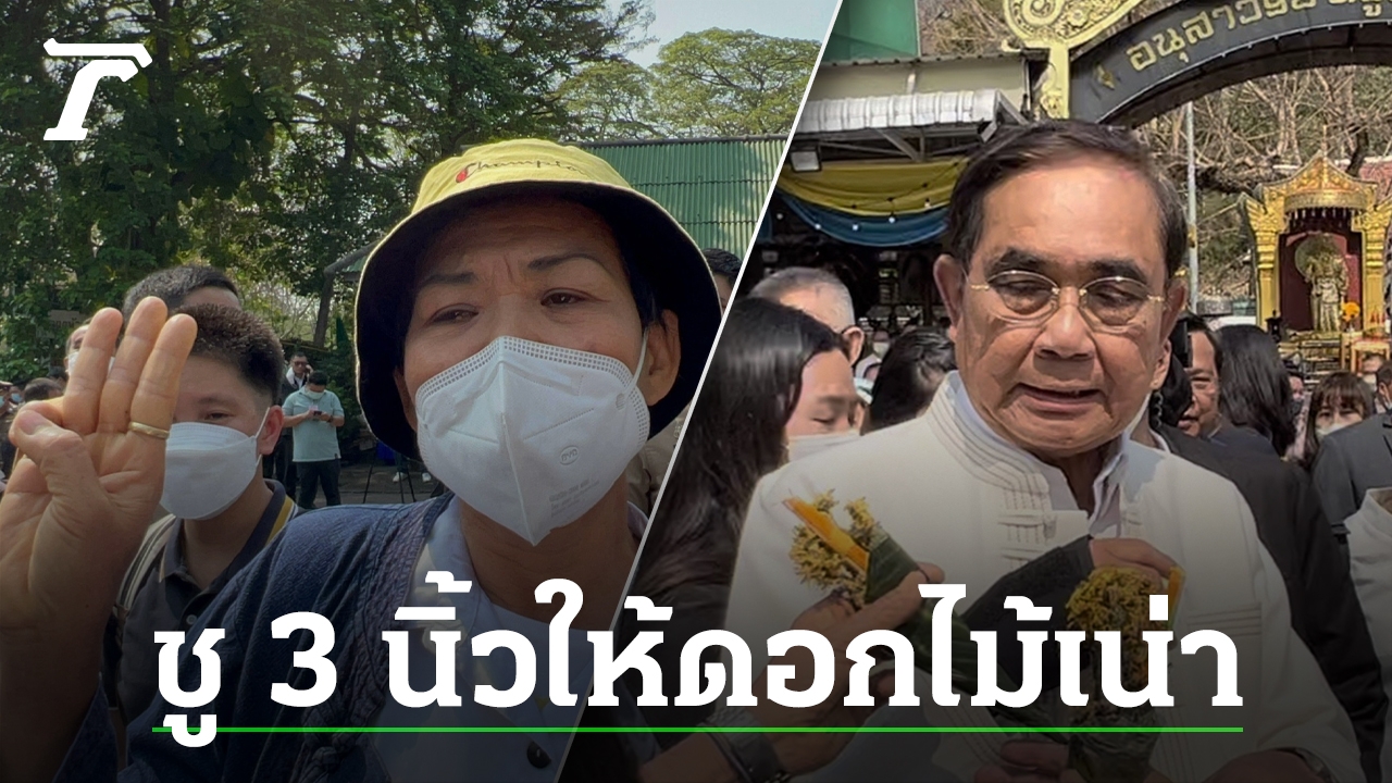 “ประยุทธ์” มาเชียงใหม่ ไหว้ครูบา สืบชะตาหลวง เจอ ป้าชู 3 นิ้ว บุกให้กรวยดอกไม้แห้ง ถาม “ยุบสภาวันไหน” บอกสื่อถึงความเหี่ยวเฉาของประเทศ และความพินาศ 8 ปีที่ พลเอกประยุทธ์ อยู่