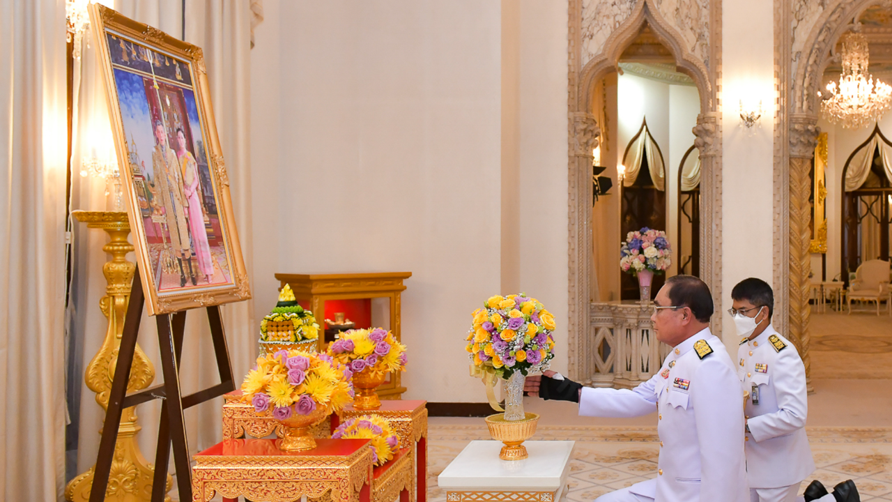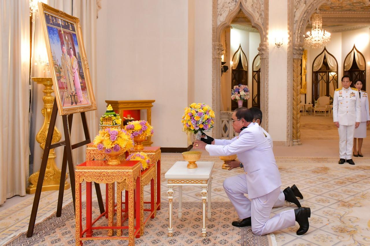 พระบาทสมเด็จพระเจ้าอยู่หัว และสมเด็จพระนางเจ้าฯ พระบรมราชินี พระราชทานแจกันดอกไม้แก่นายกรัฐมนตรี เนื่องในวันคล้ายวันเกิดอายุครบ 69 ปี