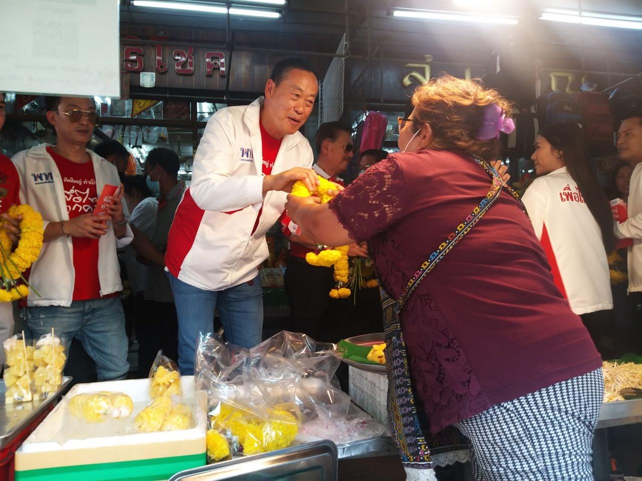เวลา 16.30 น. วันที่ 22 มีนาคม 2566 ที่จังหวัดนนทบุรี แกนนำพรรคเพื่อไทย (พท.) นำโดย นพ.ชลน่าน ศรีแก้ว หัวหน้าพรรคเพื่อไทย นายเศรษฐา ทวีสิน ประธานที่ปรึกษาหัวหน้าครอบครัวเพื่อไทยและที่ปรึกษาคณะกรรมการด้านเศรษฐกิจพรรคเพื่อไทย นายพานทองแท้ ชินวัตร สมาชิกพรรคเพื่อไทย นายณัฐวุฒิ ใสยเกื้อ ผู้อำนวยการครอบครัวเพื่อไทย พร้อมด้วย นายจิรพงษ์ ทรงวัชราภรณ์, นายมานะศักดิ์ จันทร์ประสงค์, นายมนตรี ตั้งเจริญถาวร, นายภณณัฏฐ์ ศรีอินทร์สุทธิ์, นายปณรัศม์ วันชาญเวช, นายนิยม ประสงค์ชัยกุล, นายนพดล แก้วสุพัฒน์ และนายจำลอง ขำสา ว่าที่ผู้สมัครส.ส.นนทบุรี พรรคเพื่อไทย เดินตลาดสดเทศบาลนนทบุรีเพื่อพบปะพ่อค้าแม่ค้าสอบถามเรื่องราคาสินค้า สภาพเศรษฐกิจ และการค้าขาย รวมถึงพบปะทักทายพี่น้องประชาชนที่มาเดินจับจ่ายซื้อของในช่วงเย็น