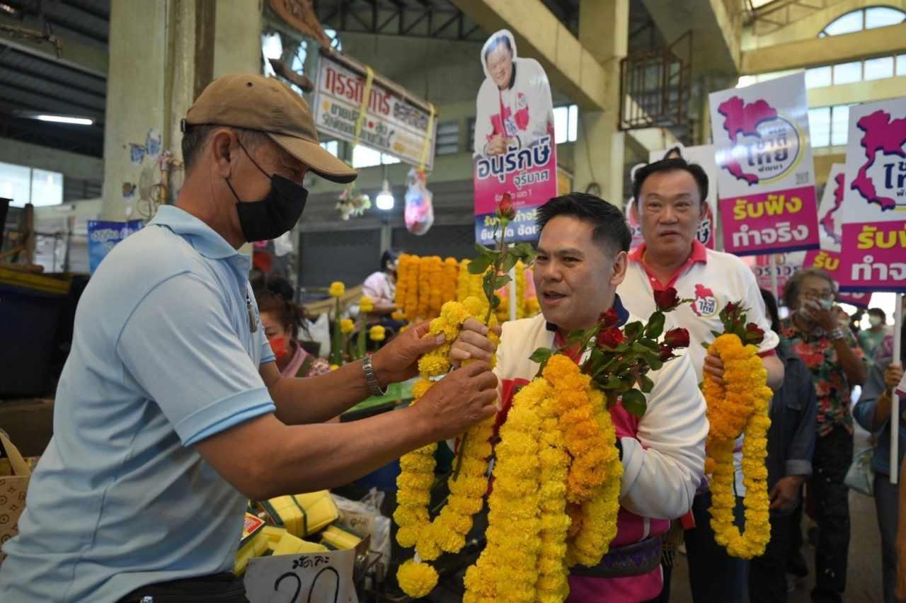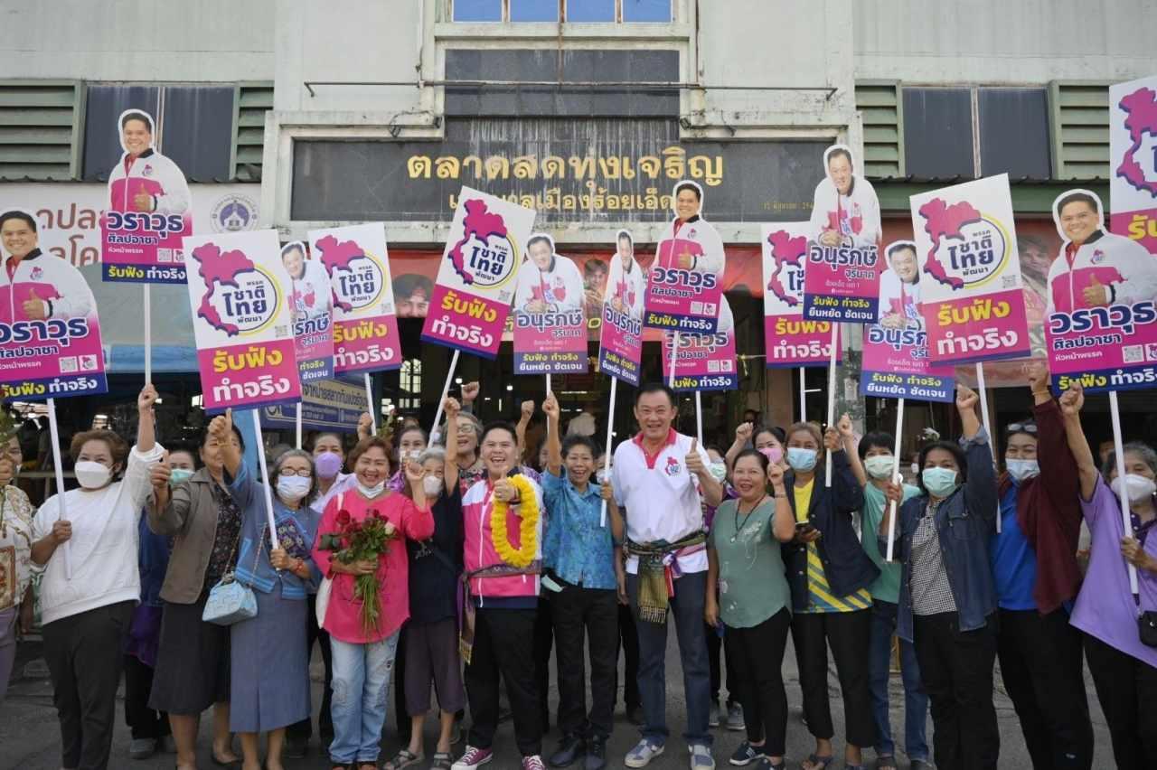 วันที่ 25 มีนาคม 2566 ที่ตลาดทุ่งเจริญ เขตเทศบาลเมืองร้อยเอ็ด จ.ร้อยเอ็ด นายวราวุธ ศิลปอาชา หัวหน้าพรรคชาติไทยพัฒนา และคณะ ลงพื้นที่หาเสียงให้กับนายอนุรักษ์ จุรีมาศ รองหัวหน้าพรรคชาติไทยพัฒนา ที่ลงสมัครรับเลือกตั้งในเขตเลือกตั้งที่ 1 จังหวัดร้อยเอ็ด โดยมีประชาชนนำดอกไม้ ผ้าขาวม้า มามอบให้กับนายวราวุธ และนายอนุรักษ์ ด้วยความอบอุ่น