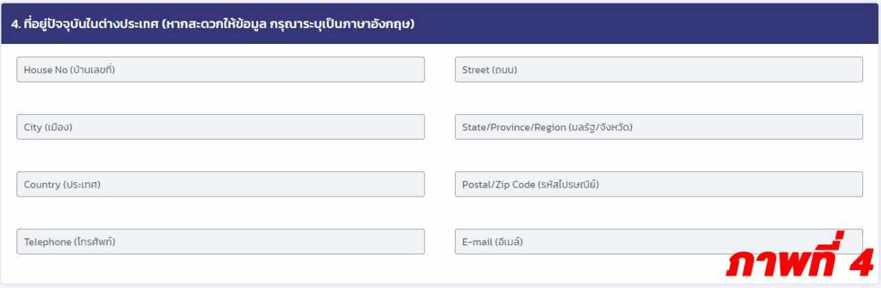 • ที่อยู่ปัจจุบันในต่างประเทศ (กรุณาระบุข้อมูลเป็นภาษาอังกฤษ) (ภาพที่ 4)