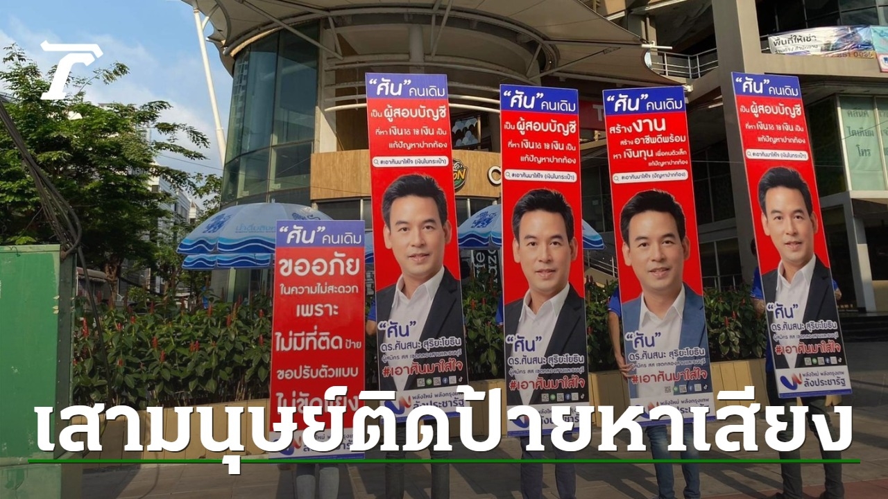 “ศันสนะ” ผู้สมัคร ส.ส. กทม. พปชร. ผุดไอเดีย “เสามนุษย์ติดป้ายหาเสียง” แก้ปัญหาไม่มีที่ติดป้าย ก้าวข้ามความขัดแย้ง ตามนโยบายหัวหน้าพรรค “ลุงป้อม”