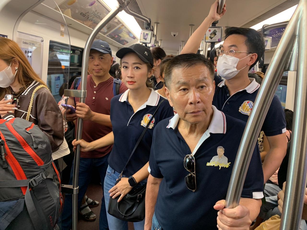 "เสรีพิศุทธ์" เปลี่ยนลุค นุ่งกางเกงยีนส์ ขึ้นรถไฟฟ้า ช่วยว่าที่ผู้สมัคร ส.ส.เขตคลองเตย-วัฒนา หาเสียงย่านสุขุมวิท พร้อมขอฝากให้เป็นตัวแทนเข้าไปนั่งในสภา