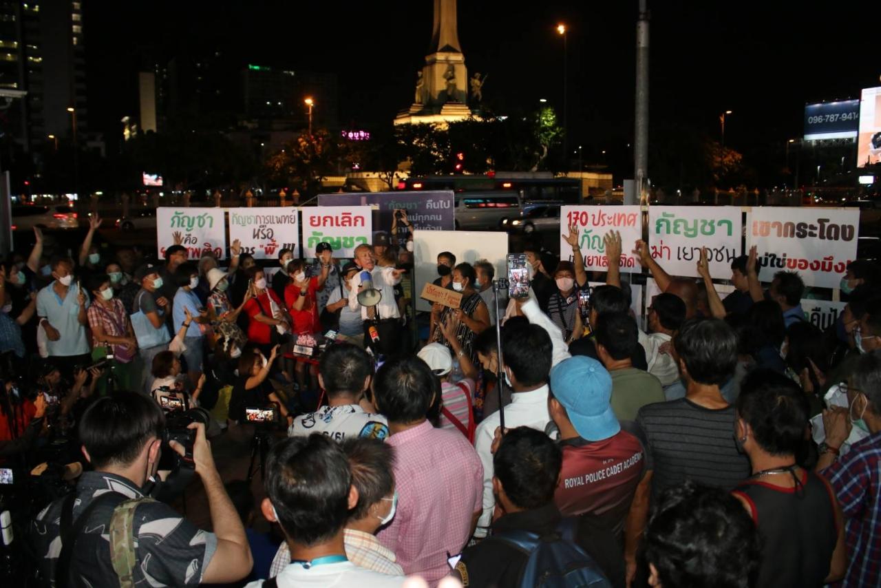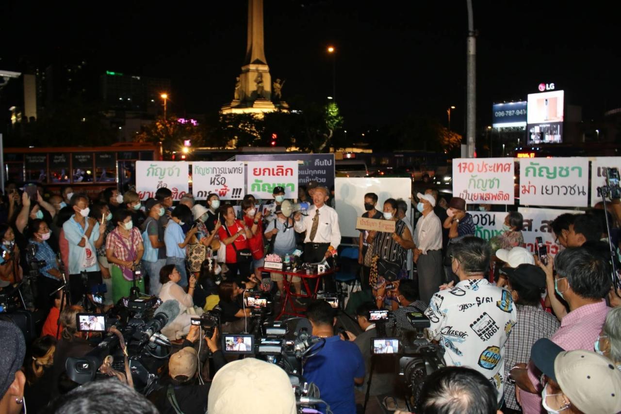 เมื่อเวลา 19.30 น. วันที่ 7 เมษายน 2566 ที่อนุสาวรีย์ชัยสมรภูมิ นายชูวิทย์ กมลวิศิษฎ์ จัดกิจกรรมรณรงค์ให้เห็นถึงโทษของการใช้กัญชา ภายหลังจากที่ศาลมีคำสั่งเพิกถอนคำสั่งคุ้มครองชั่วคราว กรณี พรรคภูมิใจไทย ได้ยื่นคำร้องขอให้คุ้มครองชั่วคราวระหว่างพิจารณาคดีไม่ให้ นายชูวิทย์ กล่าวถึง นโยบายกัญชาเสรี ของพรรคภูมิใจไทย โดยมีการนำป้ายระบุข้อความต่อต้านการใช้กัญชา และโทษของกัญชามาติดไว้ โดยมีประชาชนบริเวณอนุสาวรีย์ชัยสมรภูมิมายืนรอให้ความสนใจ