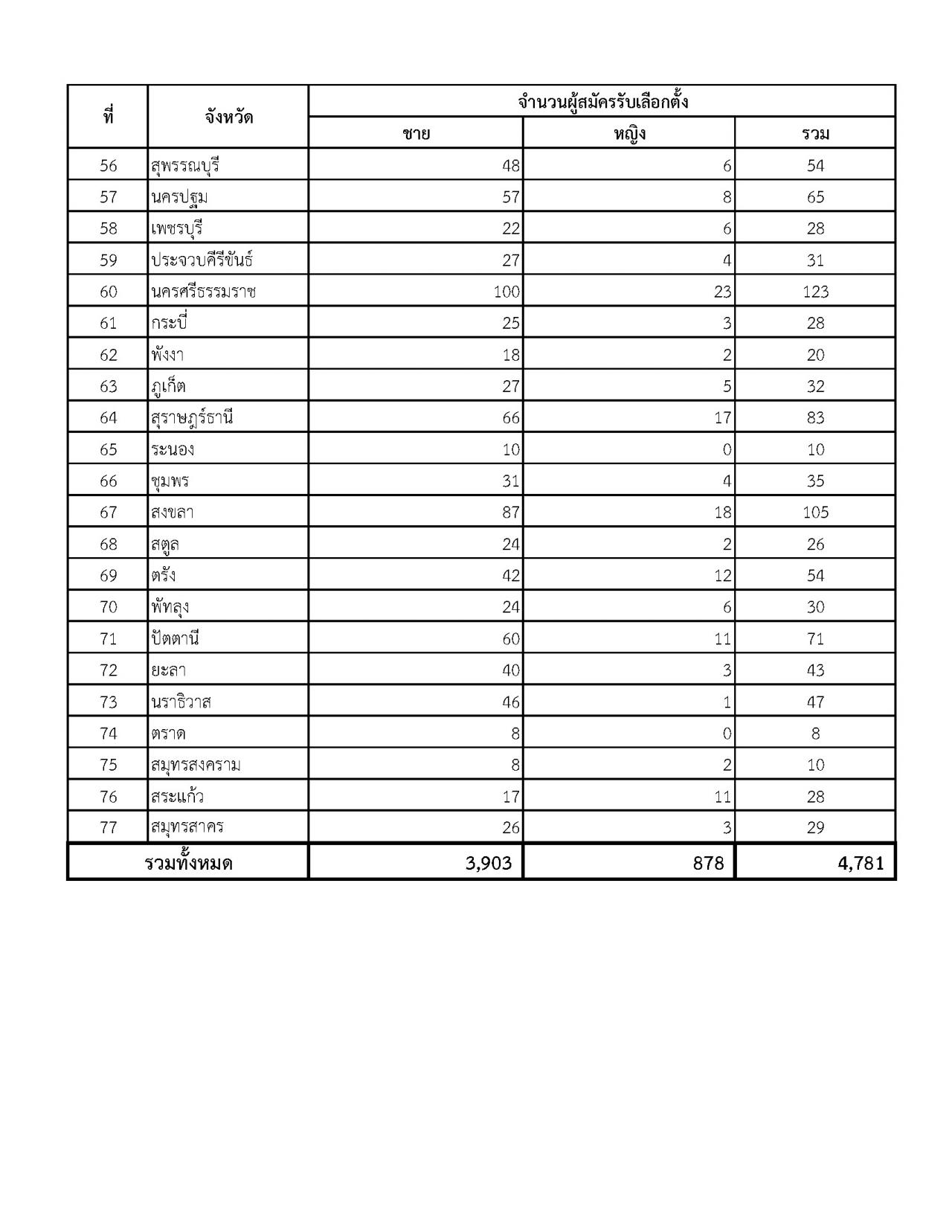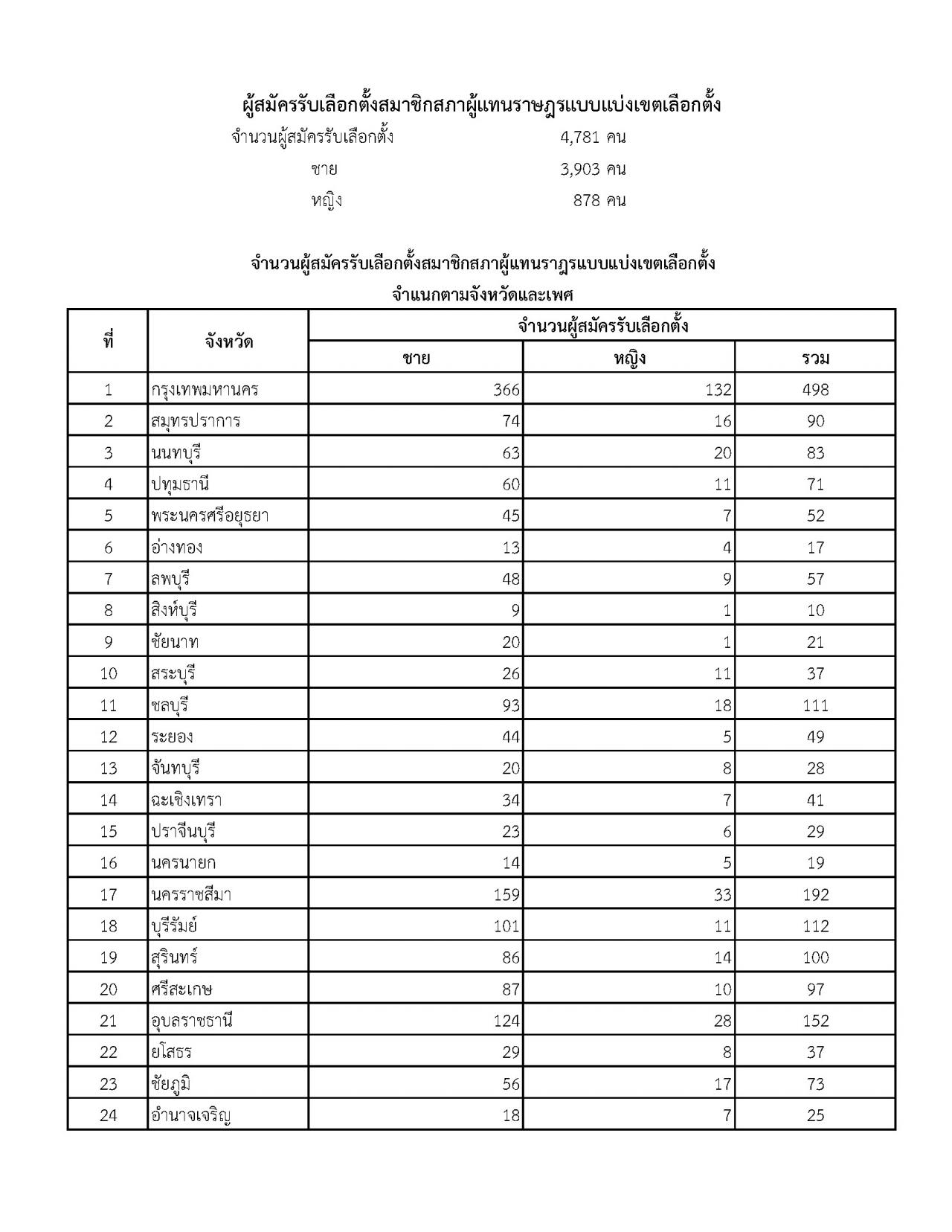 2. ผู้สมัคร ส.ส.แบบแบ่งเขตเลือกตั้ง ทั้งหมด 4,781 คน