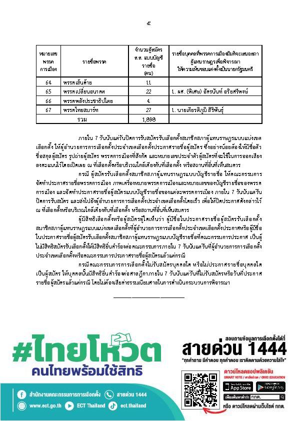 2. ผู้สมัคร ส.ส.แบบบัญชีรายชื่อ ทั้งหมด 1,898 คน