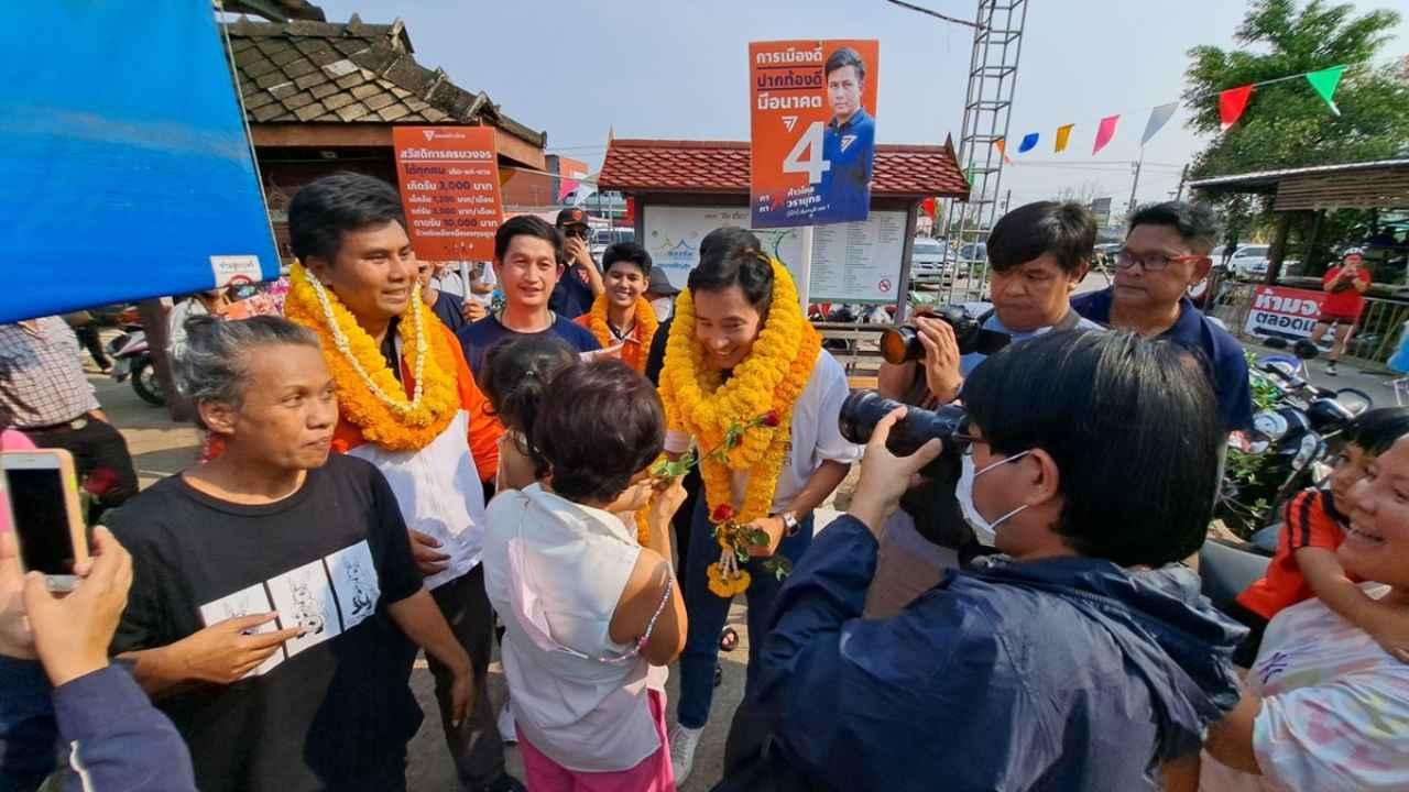 พิธา นำทีมพรรคก้าวไกล ลงพื้นที่เมืองจันทบุรี โดยมีประชาชนที่สนใจรอต้อนรับ ลั่นตั้งกระทะผัดเผ็ดงูเห่าย้ำรอบนี้ไม่มีซ้ำรอยแน่ เดินลุยช่วยลูกพรรคหาเสียง พร้อมตั้งธงไม่ร่วมรัฐบาลกับแคนดิเดต นายกฯ 2 ป.