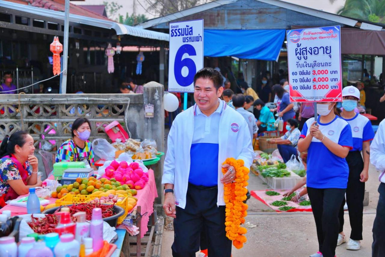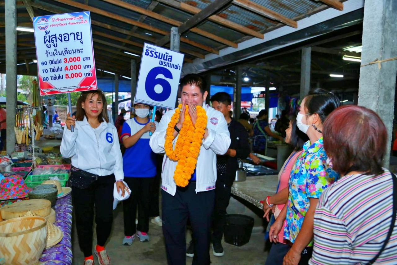 สำหรับการเพิ่มเบี้ยยังชีพแบบขั้นบันได ตั้งแต่อายุ 60 ปี เพิ่มเป็นจำนวน 3,000 บาทต่อเดือน อายุ 70 ปีขึ้นไป เพิ่มเป็นจำนวน 4,000 บาทต่อเดือน และอายุ 80 ปีขึ้นไป เพิ่มเป็นจำนวน 5,000 บาทต่อเดือน และยังจะดูแลทุกช่วงวัยด้วย รวมถึงเน้นแก้ปัญหาที่ดินทำกิน โดยผลักดันเปลี่ยน ส.ป.ก. เป็นโฉนด และ ค.ท.ช. เปลี่ยนเป็น ส.ป.ก. ตามเป้าหมาย “มีเรา ไม่มีแล้ง มีน้ำ ไม่มีจน” ล้วนแต่เป็นประโยชน์และสำคัญต่อการดำรงชีวิตของประชาชนทุกคน ซึ่งตลอดสองข้างทางที่รถแห่หาเสียงเคลื่อนตัวผ่าน มีชาวบ้านออกมาส่งเสียงเชียร์ให้กำลังใจ ทั้งนี้ ร.อ.ธรรมนัส ยังได้ฝากให้ประชาชนออกไปใช้สิทธิ์เลือกตั้งในวันที่ 14 พฤษภาคม 2566 ด้วย.