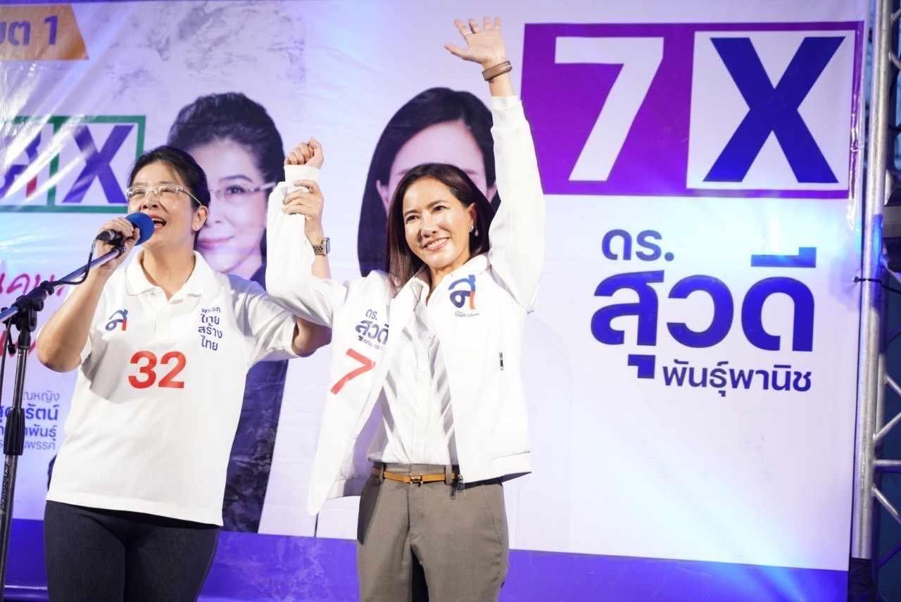 วันที่ 17 เม.ย. 2566 ผู้สื่อข่าวรายงานว่า คุณหญิงสุดารัตน์ เกยุราพันธุ์ หัวหน้าพรรคไทยสร้างไทย เดินสายช่วยผู้สมัครส.ส.กทม.พรรคไทยสร้างไทยหาเสียง เริ่มด้วยการ ลงพื้นที่ ช่วย นายภัชริ นิจสิริภัช ผู้สมัคร ส.ส. กทม.เขต 24 คลองสาน ธนบุรี พรรคไทยสร้างไทย หาเสียงที่ย่านกุฎีจีน จากนั้นลงพื้นที่ช่วย น.ส.สุวดี พันธุ์พานิช ผู้สมัคร ส.ส. เขต 1 บางรัก พระนคร ป้อมปราบศัตรูพ่าย สัมพันธวงศ์ ดุสิต หาเสียงที่ชุมชนท่าเตียน ก่อนจัดเวทีปราศรัยที่ชุมชนวัดโสมนัส มีประชาชนรอรับฟังการปราศรัยจำนวนมาก โดยคุณหญิงสุดารัตน์ ปราศรัยว่า นโยบาย บำนาญประชาชนไทยสร้างไทยไม่ใช่การแจกเงินแบบให้เปล่าเพื่อหวังคะแนน แบบบางพรรค แต่เราบำนาญประชาชนจะให้เดือนละ 3,000 บาทหรือปีละ 36,000 บาท ได้วันละ 100 บาท เงินสดโอนเข้าบัญชีผู้สูงอายุทุกเดือนจนกว่าจะเสียชีวิต เพื่อรองรับปัญหาสังคมสูงวัย เป็นการสร้างความยั่งยืนอย่างครบวงจร ทั้งด้านเศรษฐกิจ ด้านสุขภาพของผู้สูงอายุ ลดรายจ่ายค่ารักษาพยาบาลของรัฐ เพราะไม่ได้เป็นเงินให้เปล่า แต่ผู้รับบำนาญต้องมีหน้าที่ในการสร้างสุขภาพผ่านศูนย์สุขภาพชุมชนที่รัฐบาลพรรคไทยสร้างไทยจะจัดทำขึ้น ถือเป็นการกระตุ้นเศรษฐกิจได้ดีกว่า แจก 1,000 หรือ 10,000 บาท แบบให้เปล่าเหมือนหวังคะแนนเสียงเท่านั้น
