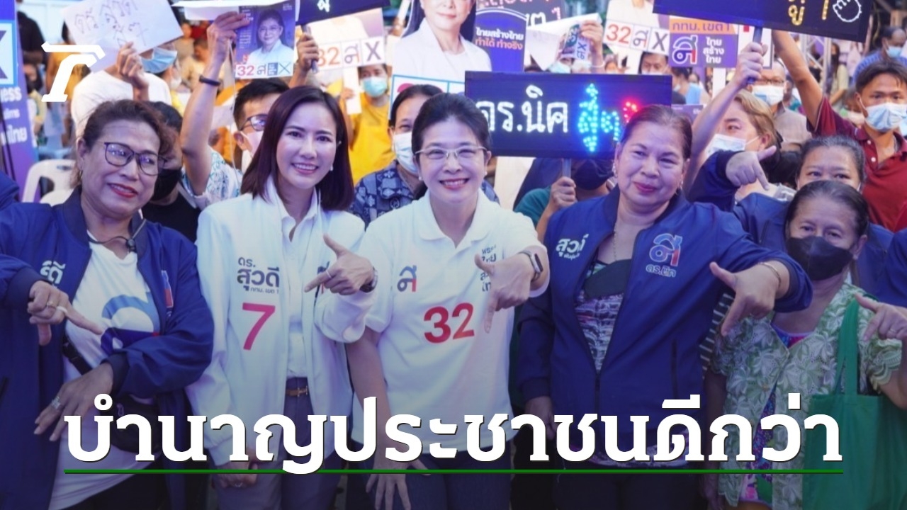 “คุณหญิงสุดารัตน์” ลงพื้นที่ กทม. โว บำนาญประชาชนให้ปีละ 36,000 บาท เงินสดโอนเข้าบัญชีผู้สูงอายุทุกเดือนจนกว่าจะเสียชีวิต ยันกระตุ้นเศรษฐกิจ ดีกว่าให้เปล่าแบบบางพรรคที่หวังแค่คะแนนเสียง
