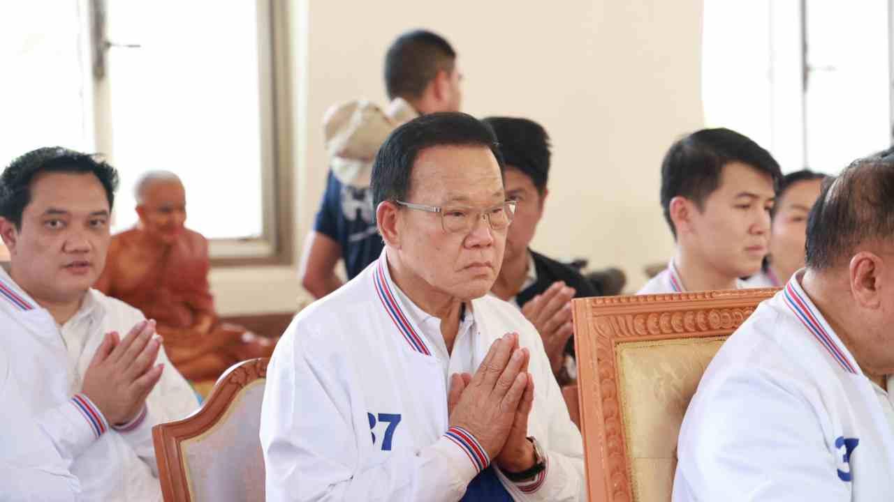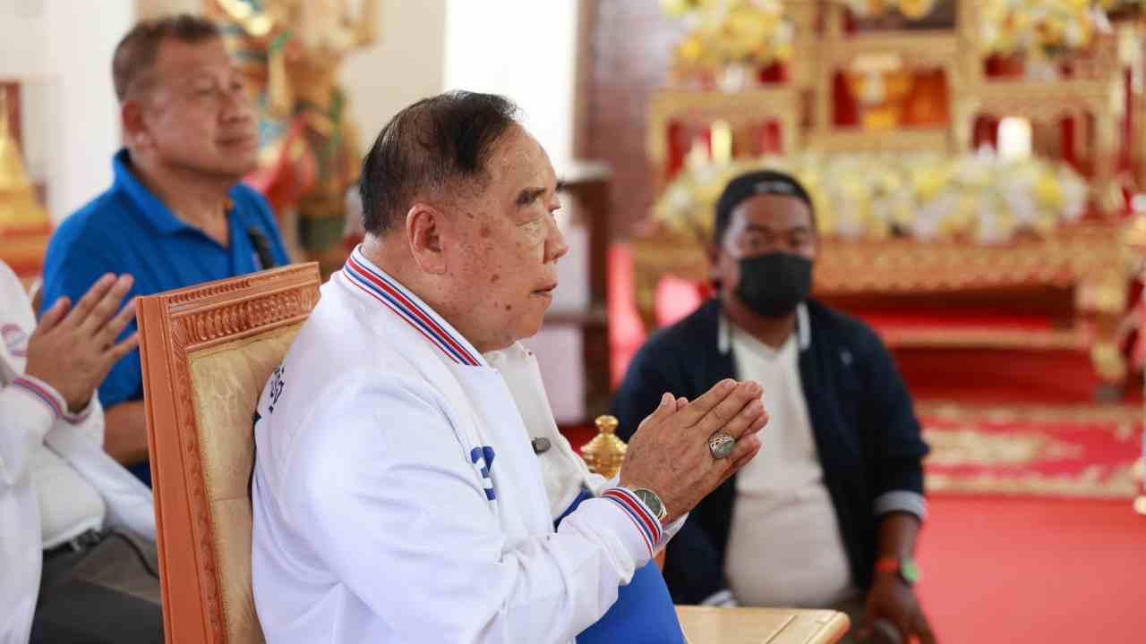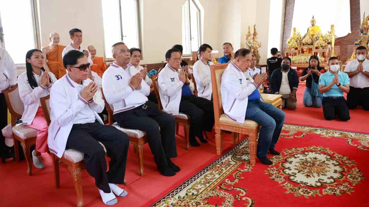 "บิ๊กป้อม" นำทัพ พปชร.ไหว้ย่าโม-สิ่งศักดิ์สิทธิ์ วัดศาลาลอย เอาฤกษ์เอาชัย หลังถึงถิ่นโคราช มวลชนแห่ต้อนรับ ตะโกน "เรารักลุงป้อม ลุงป้อมสู้ๆ" ขณะที่พระให้พร ให้ได้ป็นนายกฯ