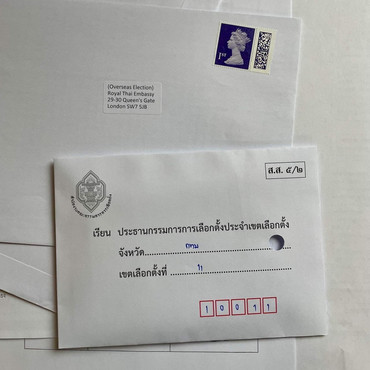 จากที่มีการตั้งข้อสังเกตเกี่ยวกับเรื่องรหัสเขตเลือกตั้งที่กรอกบนซองใส่บัตรเลือกตั้งในการเลือกตั้งล่วงหน้านอกราชอาณาจักร สำนักงานคณะกรรมการการเลือกตั้ง ขอเรียนว่า ในการส่งจดหมายโดยปกติ บริษัท ไปรษณีย์ ไทย จำกัด จะมีรหัสไปรษณีย์เพื่อสะดวกในการคัดแยกในการนำส่งจดหมายไปทั่วประเทศ ซึ่งมีถึง 928 อำเภอ หรือมากกว่า 7,000 ตำบล และมีจุดส่งไปรษณีย์อำเภอหลายพันแห่ง แต่กรณีเขตเลือกตั้งนั้น มีทั้งสิ้น 400 เขต (สำนักงานคณะกรรมการการเลือกตั้งประจำเขตเลือกตั้ง) จึงมีจุดส่ง 400 แห่ง และจะมีการเปลี่ยนแปลงไป ในการเลือกตั้งในแต่ละครั้ง ดังนั้น จึงมีความแตกต่างกันจากการส่งจดหมายปกติทั่วไป ทั้งนี้ บริษัท ไปรษณีย์ไทย จำกัด จะเป็นผู้กำหนดรหัสเขตเลือกตั้ง เพื่อใช้ในการคัดแยกซองใส่บัตรเลือกตั้งเพื่อการจัดส่งต่อไป