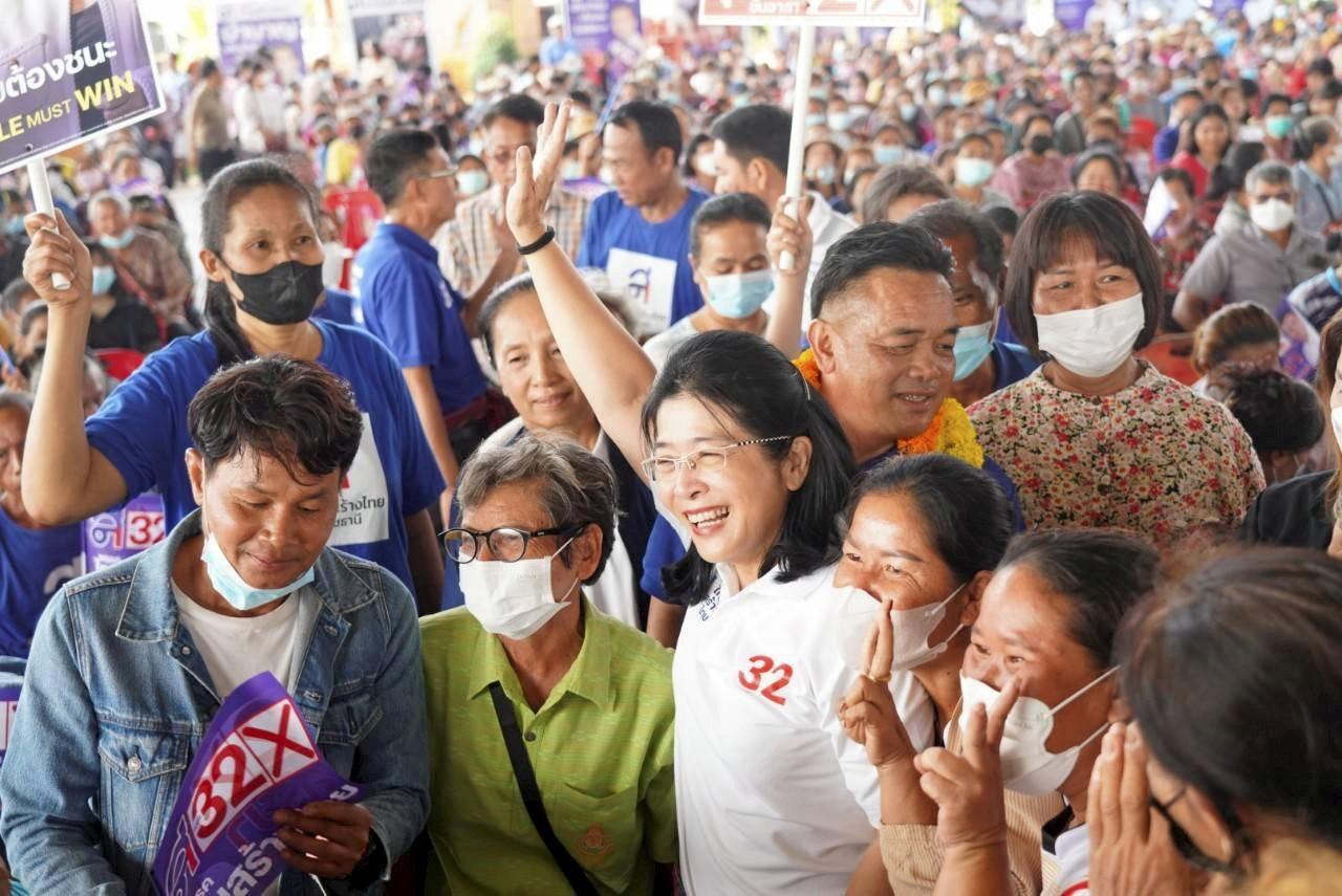 ที่โรงเรียนเดชอุดม จ.อุบลราชธานี พรรคไทยสร้างไทยจัดเวทีปราศรัยใหญ่ นำโดยคุณหญิงสุดารัตน์ เกยุราพันธุ์ หัวหน้าพรรคและแคนดิเดตนายกฯ พรรคไทยสร้างไทย พร้อมนายสิทธิชัย โควสุรัตน์ ประธานคณะกรรมการอำนวยการเลือกตั้งภาคตะวันออกเฉียงเหนือ ช่วยนายสุริยา ขันอาสา ผู้สมัคร ส.ส.อุบลราชธานี หาเสียง คุณหญิงสุดารัตน์กล่าวว่า ภาคอีสานเป็นภาคที่ใหญ่ที่สุด มีประชากรมากที่สุด พี่น้องขยันทำมาหากินที่สุด อดทน และซื่อสัตย์ที่สุด แต่กลับยากจนและยังขาดโอกาส เรามีนโยบายทำให้คนตัวเล็ก และโดยเฉพาะภาคอีสาน หายจนหมดหนี้ให้ได้ภายใน 3 ปี บำนาญประชาชน 3,000 บาท จะเป็นการกระตุ้นเศรษฐกิจอย่างมั่นคงยั่งยืน โดยเฉพาะเศรษฐกิจฐานราก ทำให้ GDP โต 5-7 เท่าภายใน 5 ปี
