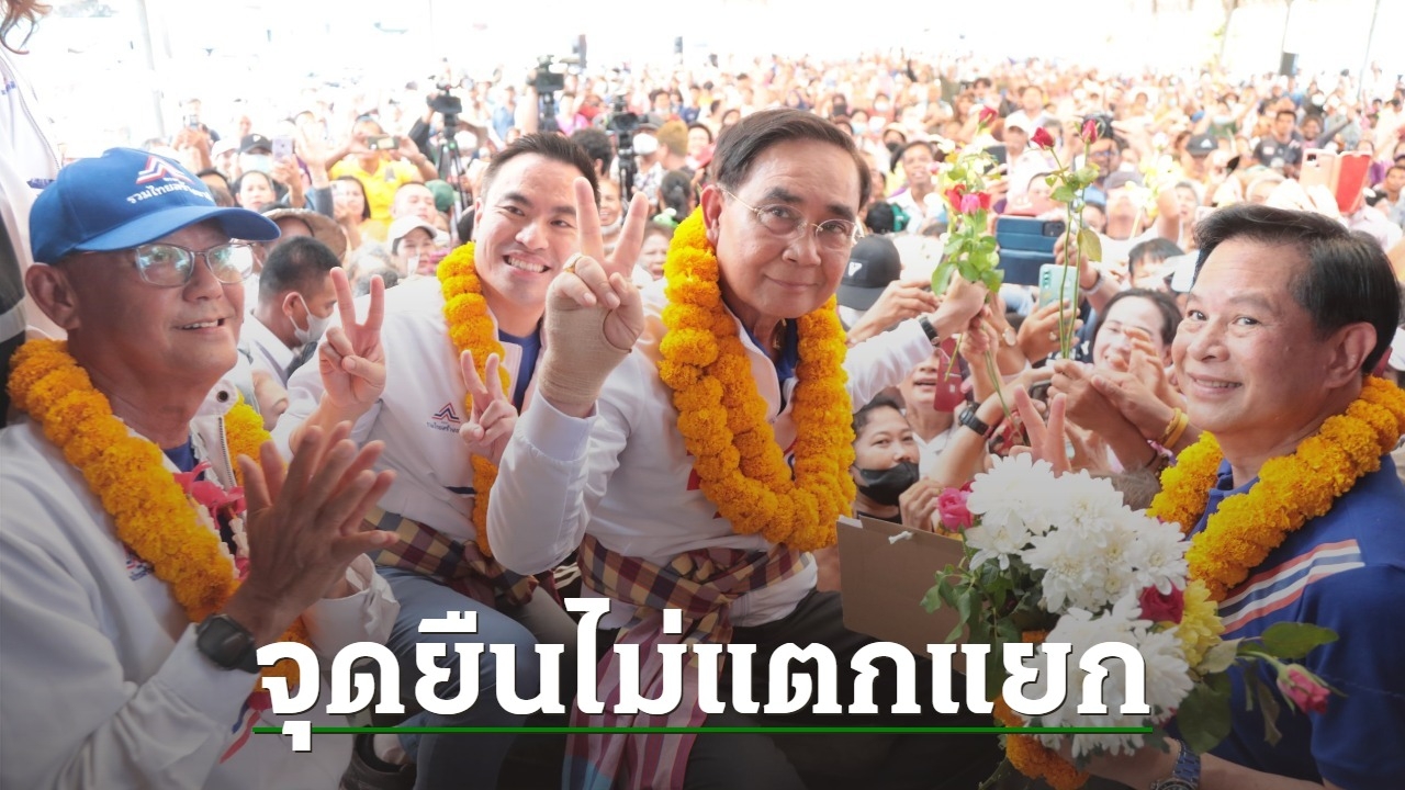 “ประยุทธ์” ยกทัพพรรครวมไทยสร้างชาติ ล่องใต้ อ้อนคนตรัง “รักจังฮู้” ขอแต้มเลือกพรรคให้มาที่ 1 ไม่ตอบชาวบ้านตะโกนถามจุดยืน 112 แต่บอกพรรคนี้มีจุดยืนไม่แตกแยก