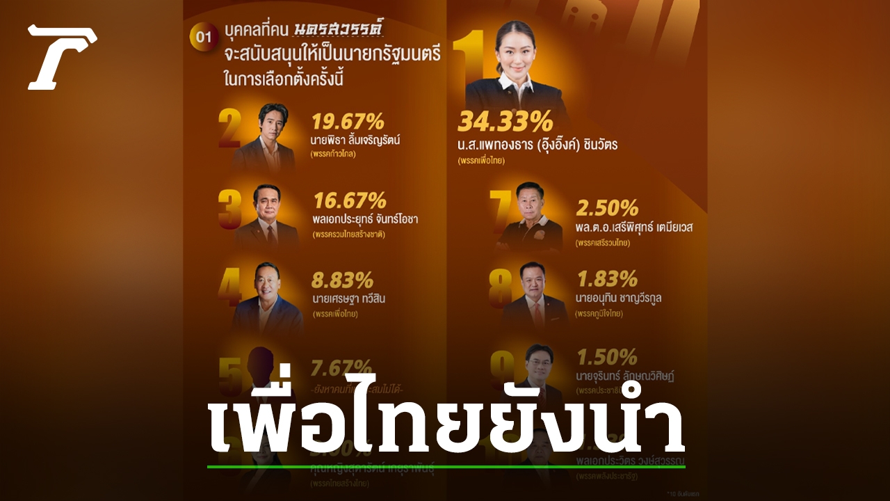 “นิด้าโพล” เผยผลสำรวจ “คนนครสวรรค์เลือกพรรคไหน” พรรคเพื่อไทย-อิ๊งค์ มาอันดับ 1 ขณะที่ “พิธา-พรรคก้าวไกล” อันดับ 2 ส่วนอันดับ 3 “บิ๊กตู่-พรรครวมไทยสร้างชาติ”