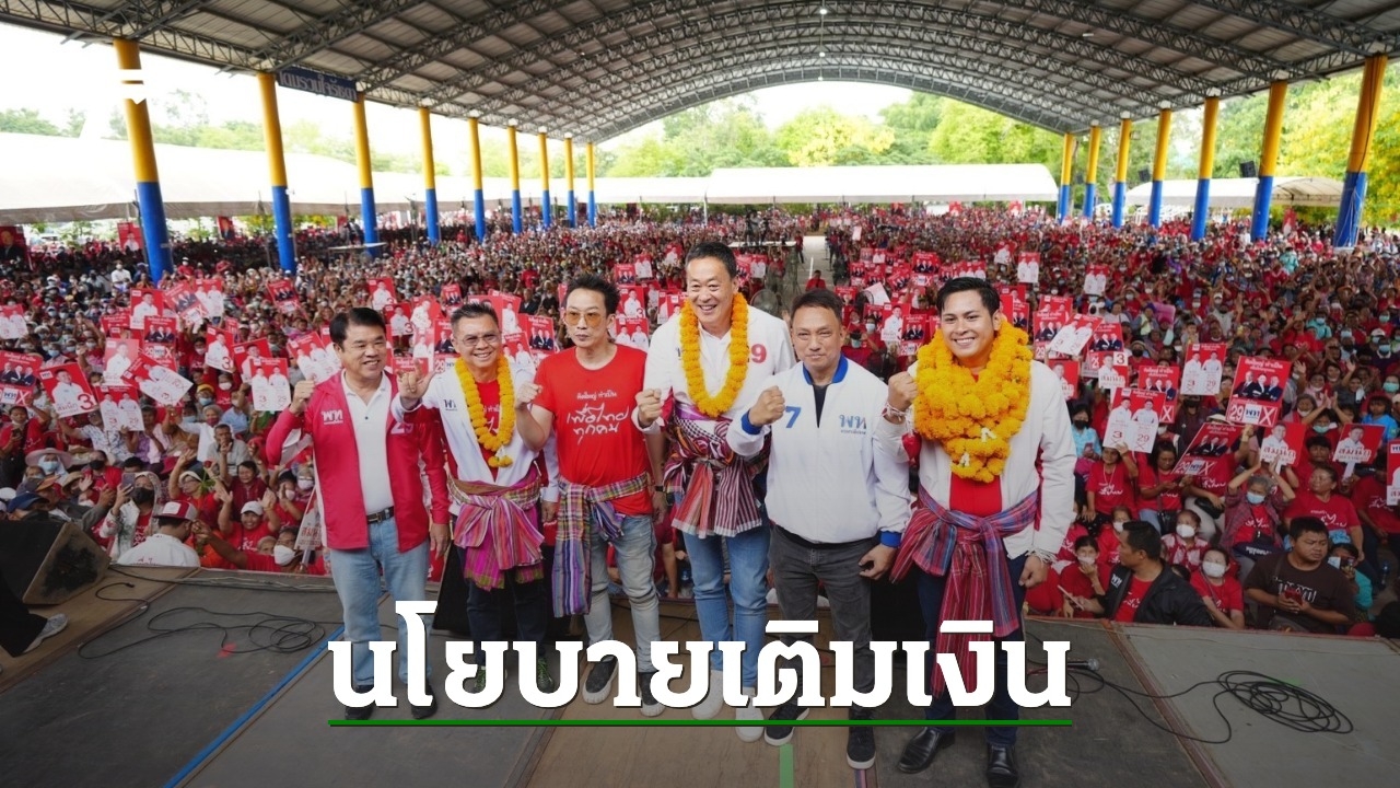 โค้งสุดท้าย เพื่อไทย บุก บุรีรัมย์ ถิ่นเนวิน เน้นแต่นโยบาย เติมเงินครอบครัว 20,000 ทุกเดือน ขอ ส.ส. 10 เขต สัญญาแก้ปัญหายาเสพติด บอก ทำการเกษตรกรรมต้อง ไม่ท่วม-ไม่แล้ง