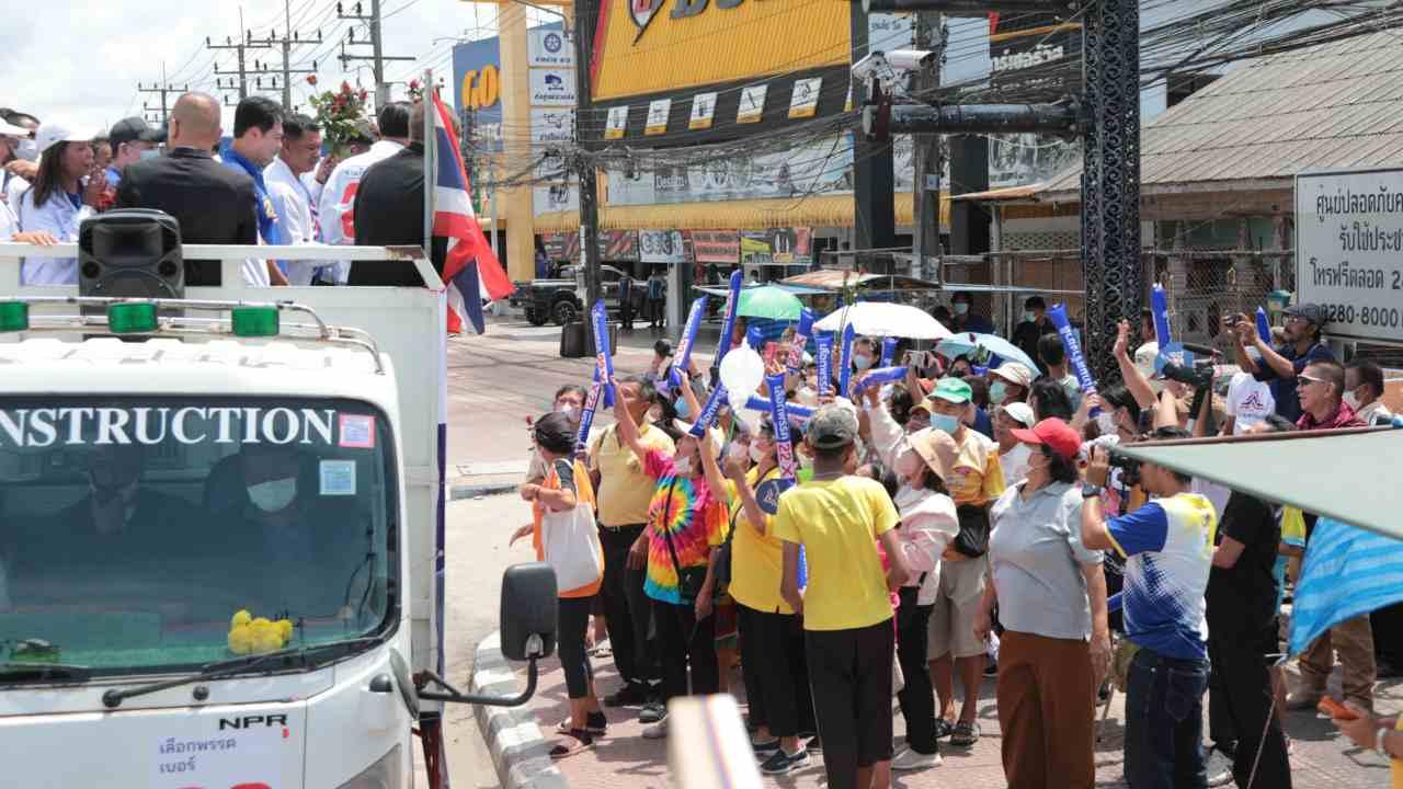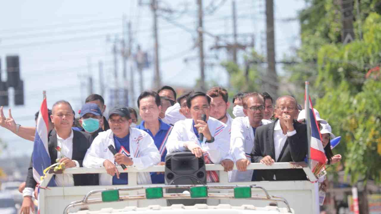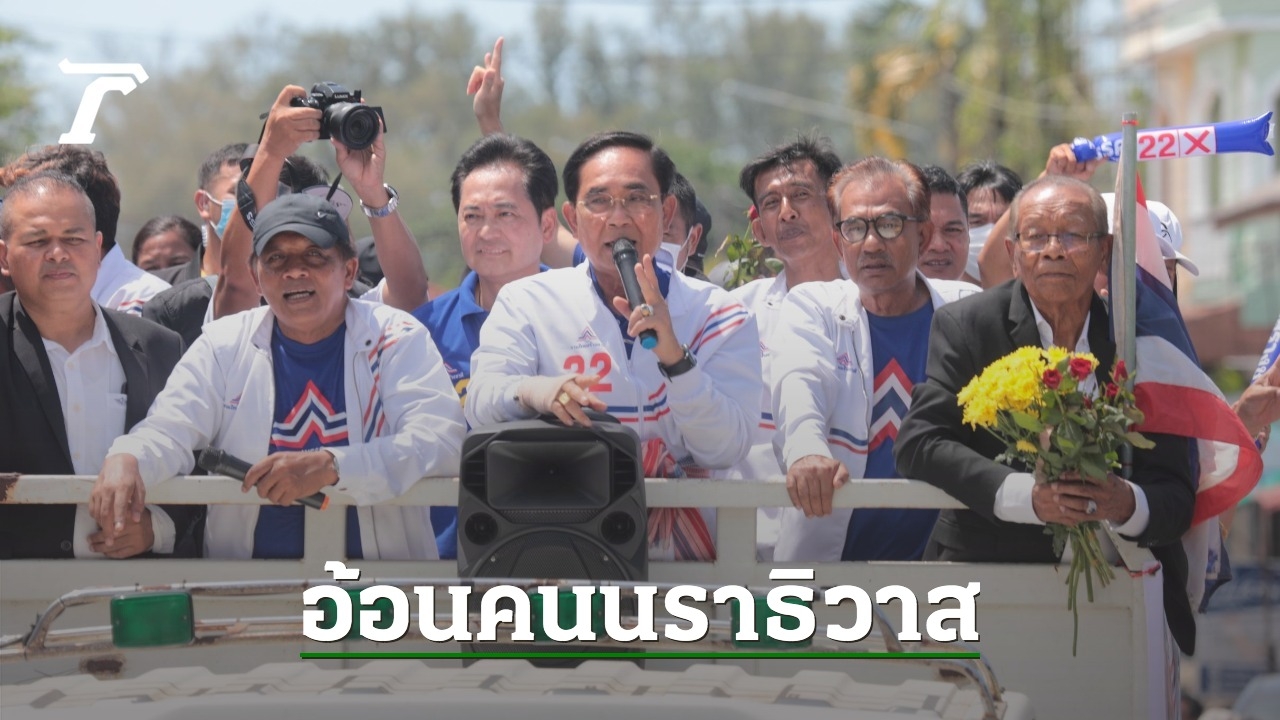 พล.อ.ประยุทธ์ กล่าวระหว่างเดินทางบนรถแห่รอบเมือง พร้อมนายวัชระ ยาวอหะซัน ผู้สมัคร ส.ส.นราธิวาส เขต 1 เบอร์ 3 ว่า ขอบคุณพี่น้องชาว จ.นราธิวาส