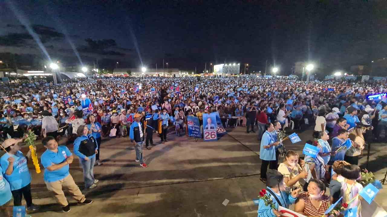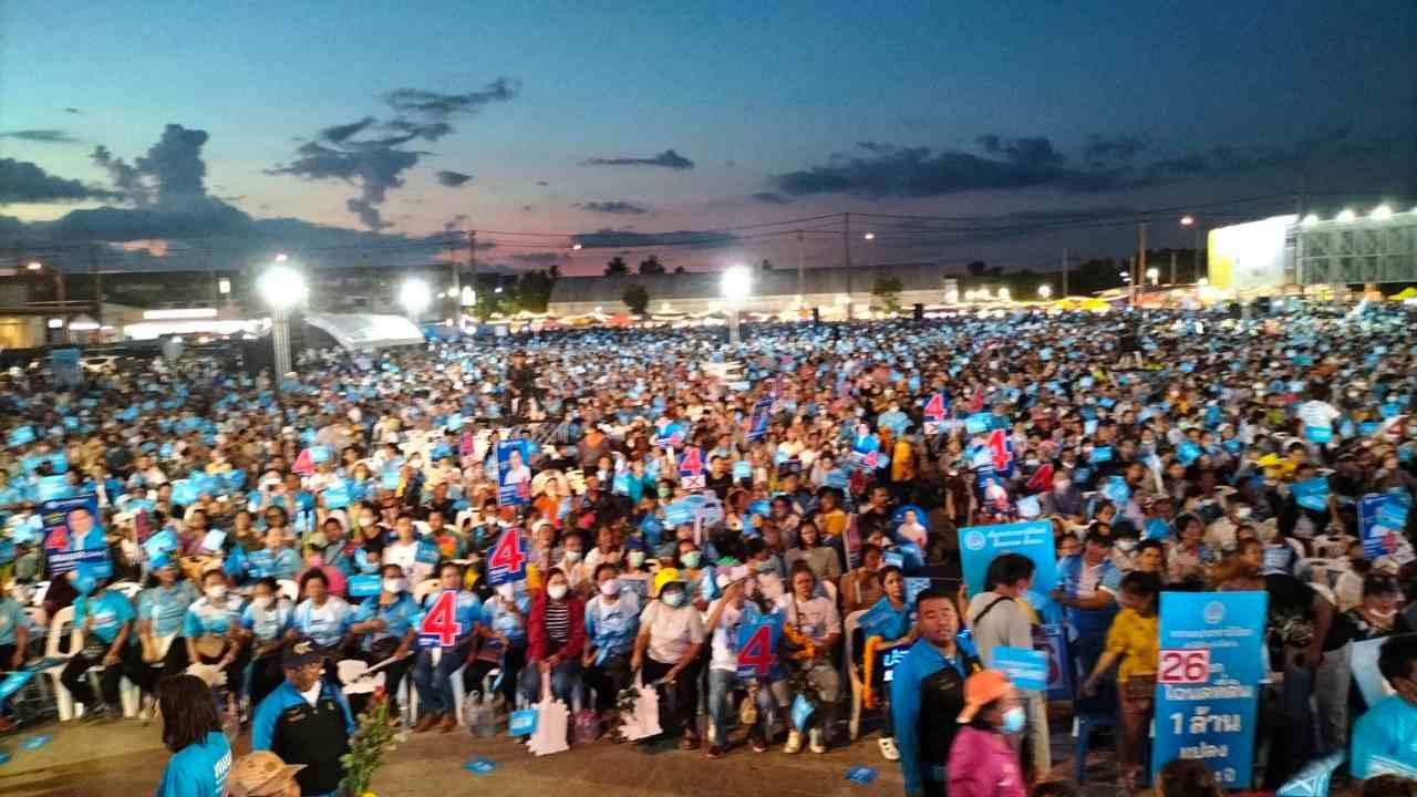 จุรินทร์ ลักษณวิศิษฏ์ หัวหน้าพรคประชาธิปัตย์ นำทีม ปชป.ปราศรัยใหญ่ เมืองสงขลา ฟื้นอดีต ขอบคุณคนสงขลา ไม่ลืม ปชป.ย้ำ เลือกพรรคสักแต่จะเปลี่ยนประเทศ สุดท้ายสิ่งดีงามถูกเปลี่ยน เรียกพลพรรคเคยเปลี่ยนใจกลับ ปชป.
