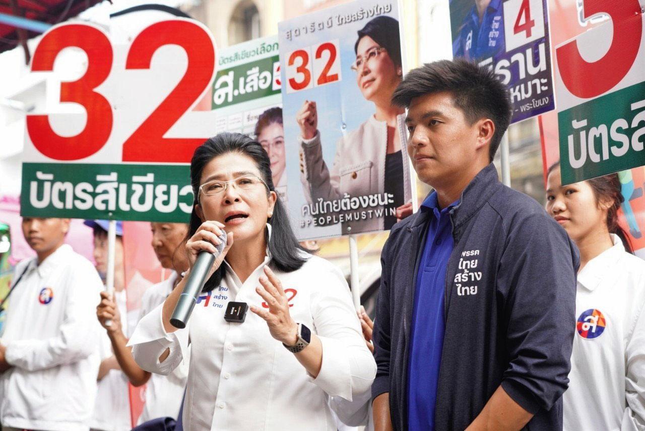ที่ตลาดอุดมสุข คุณหญิงสุดารัตน์ เกยุราพันธุ์ หัวหน้าพรรคไทยสร้างไทย (ทสท.) พร้อมนายปณิธาน ประจวบเหมาะ ผู้สมัคร ส.ส.เขต 23 กทม.พรรค ทสท.ลงพื้นที่พบปะพ่อค้าแม่ค้า โดยคุณหญิงสุดารัตน์กล่าวว่า วันนี้เรามาเดินแจก “ยากันลุง” เป็นนโยบายของพรรค ไม่ว่าลุงไหนไม่สามารถกลับมาได้อีก เป็นจุดยืนที่ถูกใจพ่อค้าแม่ขายชาวบางนา หากเลือกพรรค ทสท.ลุงกลับมาไม่ได้แน่นอน ด้วยสโลแกน “ไทยสร้างไทย ไม่เอาลุง ไม่เอาความขัดแย้ง” เป็นแคมเปญปราศรัยใหญ่วันที่ 12 พ.ค.หากเลือกคู่ขัดแย้งเดิมพรรคเดิมขั้วเดิม ความขัดแย้งจะวนเวียนกลับมาอีก พรรค ทสท.จะปิดสวิตช์รัฐประหาร ด้วยการสร้างรัฐธรรมนูญของประชาชนอย่างแท้จริง มีสภาร่างรัฐธรรมนูญ (ส.ส.ร.) ตัวแทนประชาชนร่าง มีบทบัญญัติชัดเจนว่า ผู้ทำรัฐประหารคือกบฏต้องได้รับโทษสูงสุด และจะเร่งแก้ไขปัญหาเศรษฐกิจแก้หนี้เติมทุน สร้างโอกาส ดูแลประชาชน ตั้งแต่เกิดจนแก่