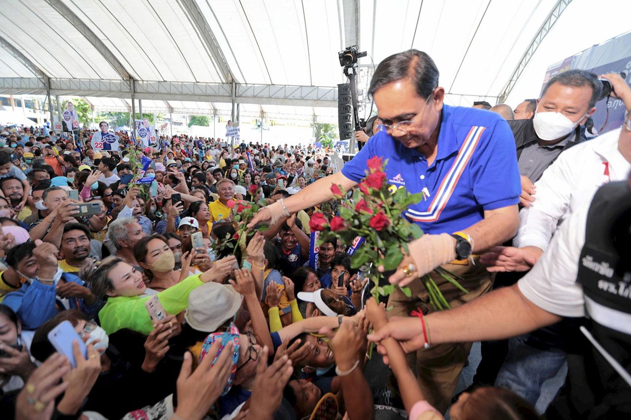 พล.อ.ประยุทธ์กล่าวอีกว่า ด่ากันทุกวันไม่มีอะไรดีขึ้น ทะเลาะกัน ไอ้ที่ด่ากันไปกันมา เข้าตัวหมด จำไว้อย่าไปสาปแช่งใคร ให้แต่ความรักแผ่เมตตาไปให้เขา ไปไหนตนไหว้พระ ไหว้เจ้าทุกที่ ใครจะหาว่าเป็นสายมูไม่เป็นไร ขอให้ชาติ ศาสนา พระมหากษัตริย์ ปลอดภัย ประชาชนมีความสุข แผ่นดินนี้เป็นแผ่นดินศักดิ์สิทธิ์ ที่เราเกิด ที่ทำมาหากิน เราจะตายที่นี่ ไม่ได้ไปตายนอกประเทศ ไม่ได้ว่าใคร บางคนออกไปทำธุรกิจนอกประเทศ อาจไปตายที่นั่นก็ได้ ไม่ยุ่งกับใครอยู่แล้ว มาเพราะต้องการให้ประเทศสงบเรียบร้อย ไม่สงบมา 10 กว่าปีแล้วอย่าทะเลาะกันอีกเลย สัญญาว่าจะทำให้ดีที่สุด แต่ถ้าได้ ส.ส.เขตน้อย ลุงตู่ก็กลับบ้านนอน แล้วอย่าคิดถึงเวลาไม่อยู่ อย่าร้องไห้นะ ทั้งหมดอยู่ที่พวกเรา จากนั้น พล.อ.ประยุทธ์สักการะศาลหลักเมืองนครศรี ธรรมราช และขึ้นเวทีปราศรัยใหญ่สนามหน้าเมือง อ.เมืองนครศรีธรรมราช