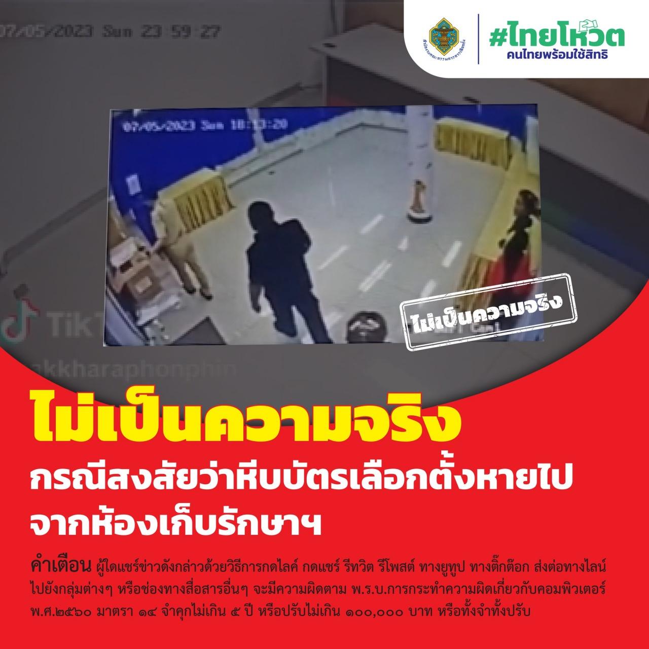วันที่ 12 พฤษภาคม 2566 สำนักงานคณะกรรมการการเลือกตั้ง หรือ กกต. ชี้แจง กรณี ผู้ใช้งานแอปพลิเคชัน TikTok ชื่อ Oakkharaphon Phinitkan ได้โพสต์คลิปวิดีโอ โดยมีข้อสงสัยและกล่าวหาว่าหีบบัตรเลือกตั้งที่เก็บรักษาไว้ในห้องเก็บรักษาหีบบัตรเลือกตั้งของเขตมีนบุรี ได้สูญหายไปจากสถานที่เก็บรักษา นั้น ข่าวดังกล่าวเป็นการนำเสนอข้อเท็จจริงที่อาจทำให้ประชาชนเกิดความเข้าใจผิดในการปฏิบัติงานของคณะกรรมการการเลือกตั้งประจำเขตเลือกตั้ง