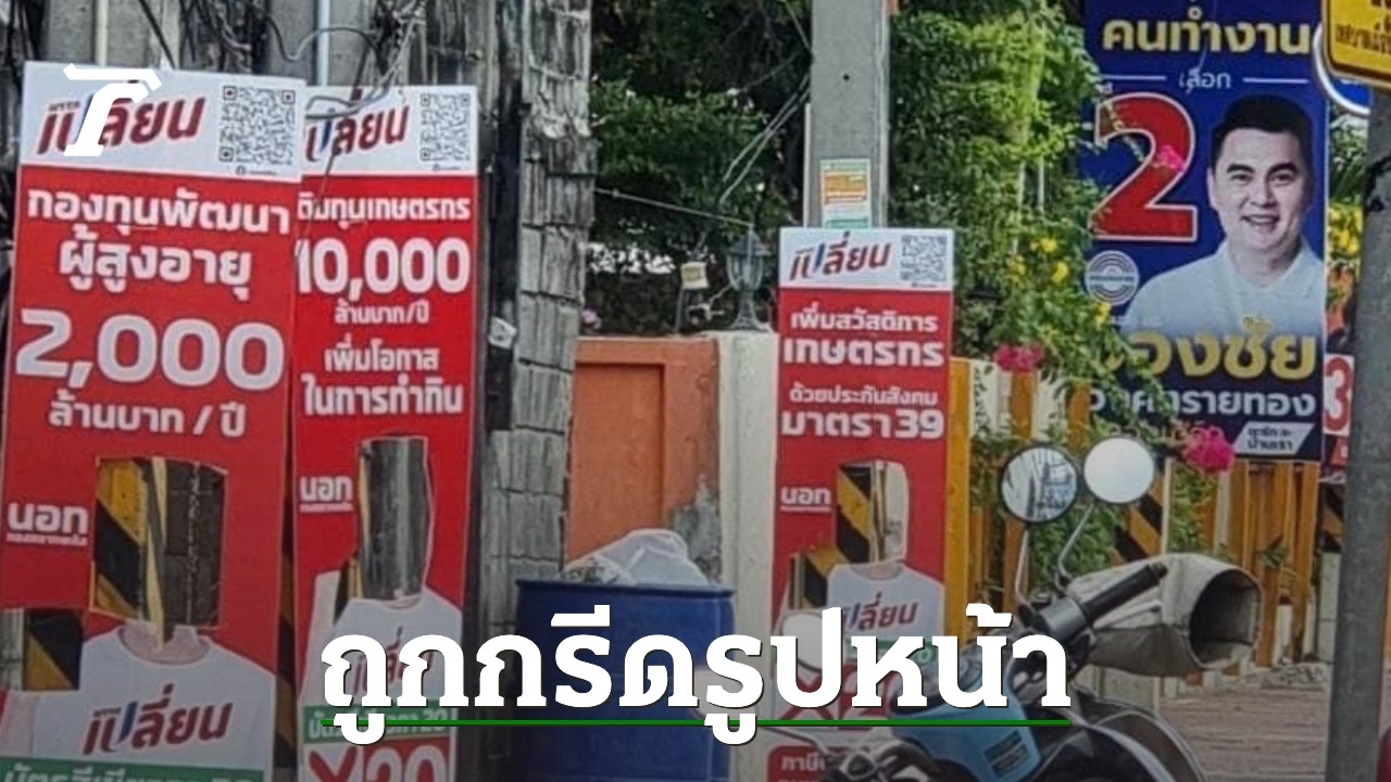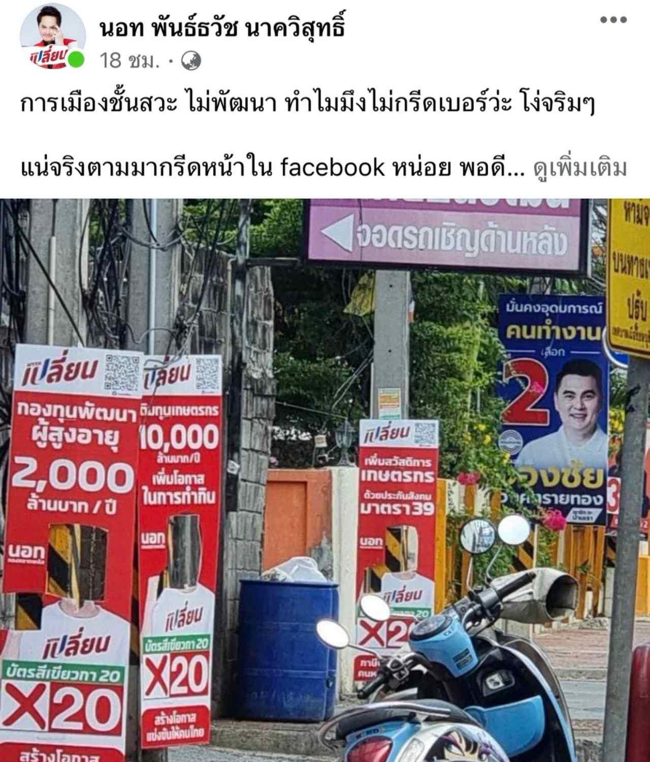 “นอท พันธ์ธวัช หัวหน้าพรรคเปลี่ยน” ของขึ้น หลังมือดีตัดใบหน้าหายจากป้ายหาเสียง ซัด การเมืองชั้นสวะ ไม่พัฒนา ท้า แน่จริงมากรีดหน้าในเฟซบุ๊ก พอดีถนัดหาเสียงออนไลน์