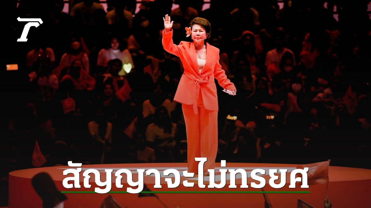 “ดิฉันสัญญาว่าจะเปล่งเสียงแทนทุกท่าน ว่าจะเรียกร้องและตรวจสอบตัวเอง ตรวจสอบพรรคก้าวไกลด้วยกันเอง ดิฉันสัญญาว่าจะไม่ทรยศหักหลัง และจะไม่ให้พี่น้องต้องประสบเหตุแบบเดิมๆ พายเรือมาส่งพวกเราถึงหน้าทำเนียบฯ แล้วพอขึ้นฟังก็ถีบหัวเรือส่ง บอกว่าส่งเราถึงฝั่งแล้ว หมดหน้าที่ กากบาทในคูหาเลือกตั้ง 4 วินาทีแล้ว พวกท่านหมดหน้าที่ ท่านส่งเราถึงฝั่งแล้ว เดี๋ยวเราจะเดินต่อไปเอง”