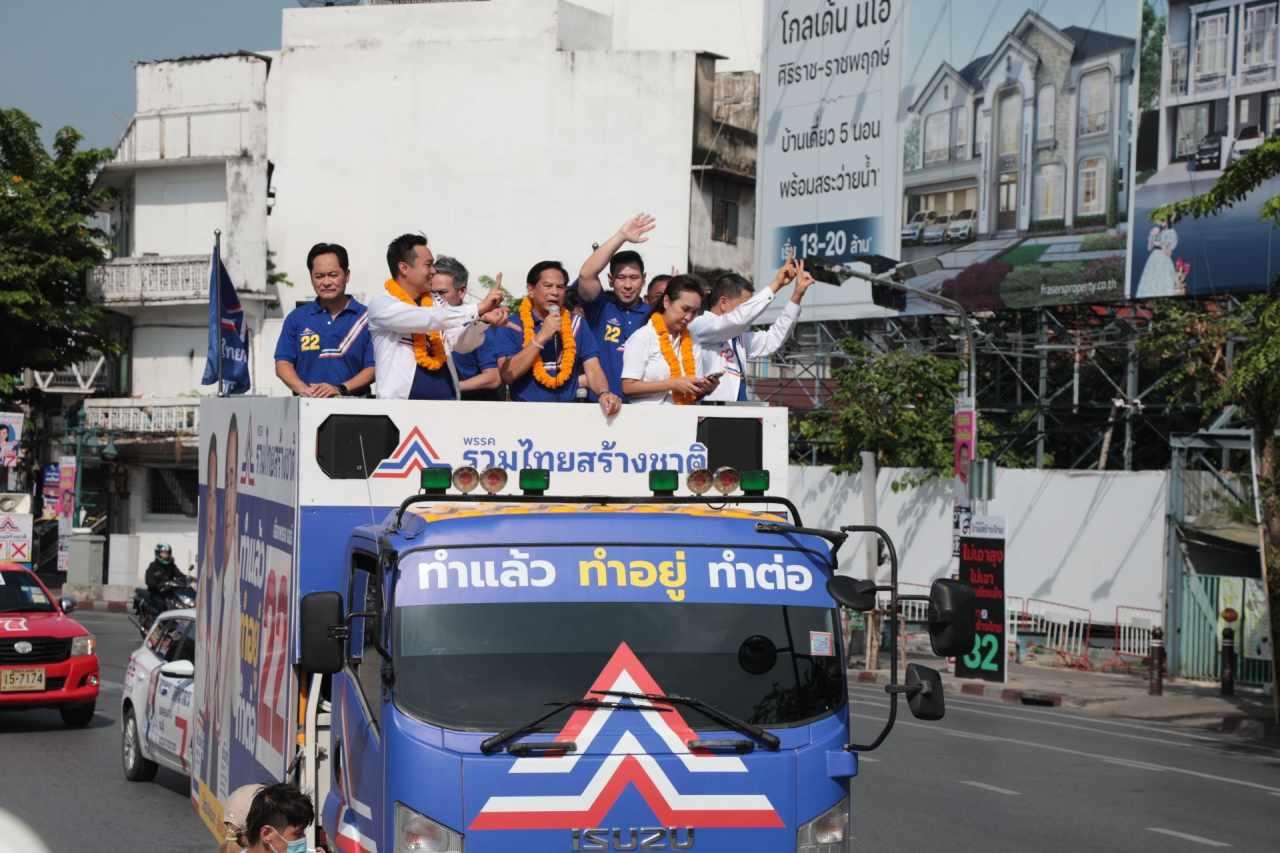 ด้านนายพีระพันธุ์ สาลีรัฐวิภาค หัวหน้าพรรค นายเกชา ศักดิ์สมบูรณ์ นายอนุชา บูรพชัยศรี นายดวงฤทธิ์ เบ็ญจาธิกุล ชัยรุ่งเรือง รองหัวหน้าพรรค นายสยาม บางกุลธรรม รองเลขาธิการพรรค พร้อมทีมแกนนำและผู้บริหารพรรครวมไทยสร้างชาติ นายอิทธิพัทธ์ เศรษฐยุกานนท์ ผู้สมัคร ส.ส.กทม.เขต 32 หมายเลข 5 และ น.ส. ศิลัมพา เลิศนุวัฒน์ ผู้สมัคร ส.ส.กทม.เขต 24 เบอร์ 7 ขึ้นรถแห่หาเสียงเป็นวันสุดท้ายก่อนการเลือกตั้ง เริ่มต้นที่แยกวงเวียนใหญ่ โดยทันทีที่มาถึง นายพีระพันธุ์ ได้นำคณะได้สักการะ พระบรมราชานุสาวรีย์สมเด็จพระเจ้าตากสินมหาราช โดยมีผู้สมัคร ส.ส. ในพื้นที่ฝั่งธนฯ รอต้อนรับ พร้อมร่วมขบวนแห่ โดยช่วงเช้าเป็นการขึ้นรถแห่ย่านฝั่งธน