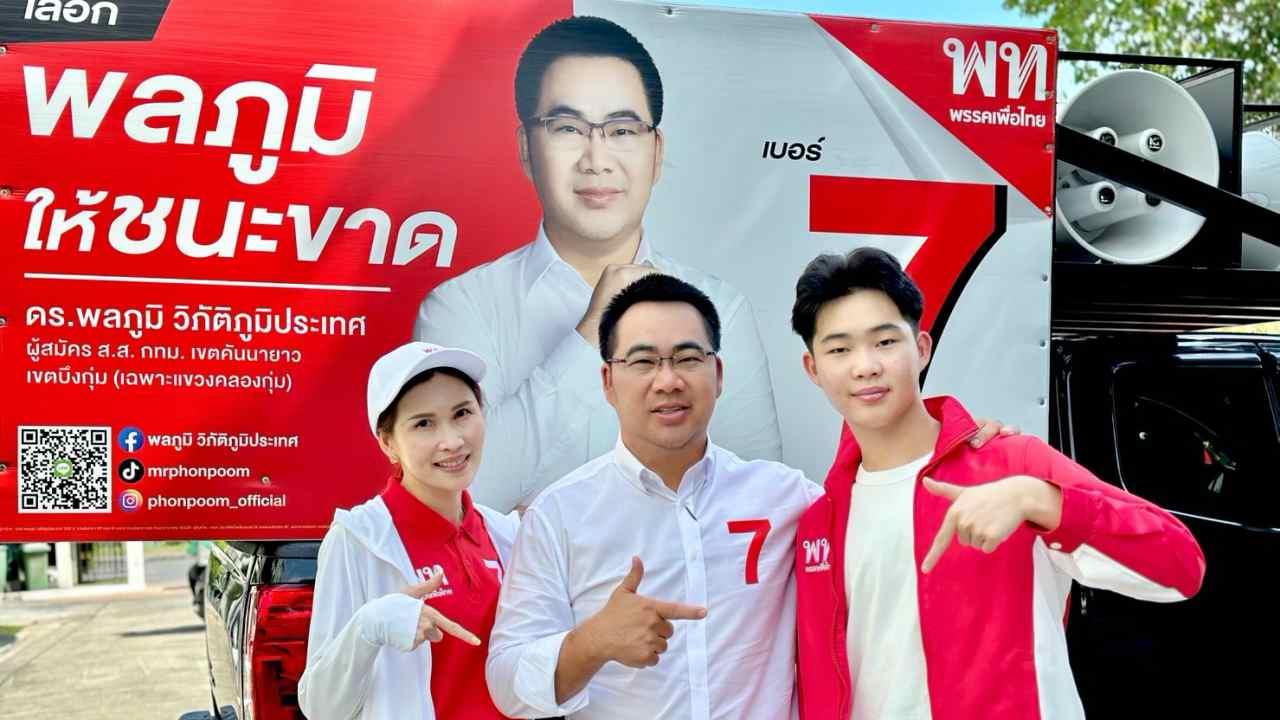 "พลภูมิ" ควง ภรรยา-ลูกชาย หาเสียงวันสุดท้าย ขอ ประชาชน เลือกคนทำงาน เลือกเพื่อไทย ชู ประเทศไทยเปลี่ยนทันที