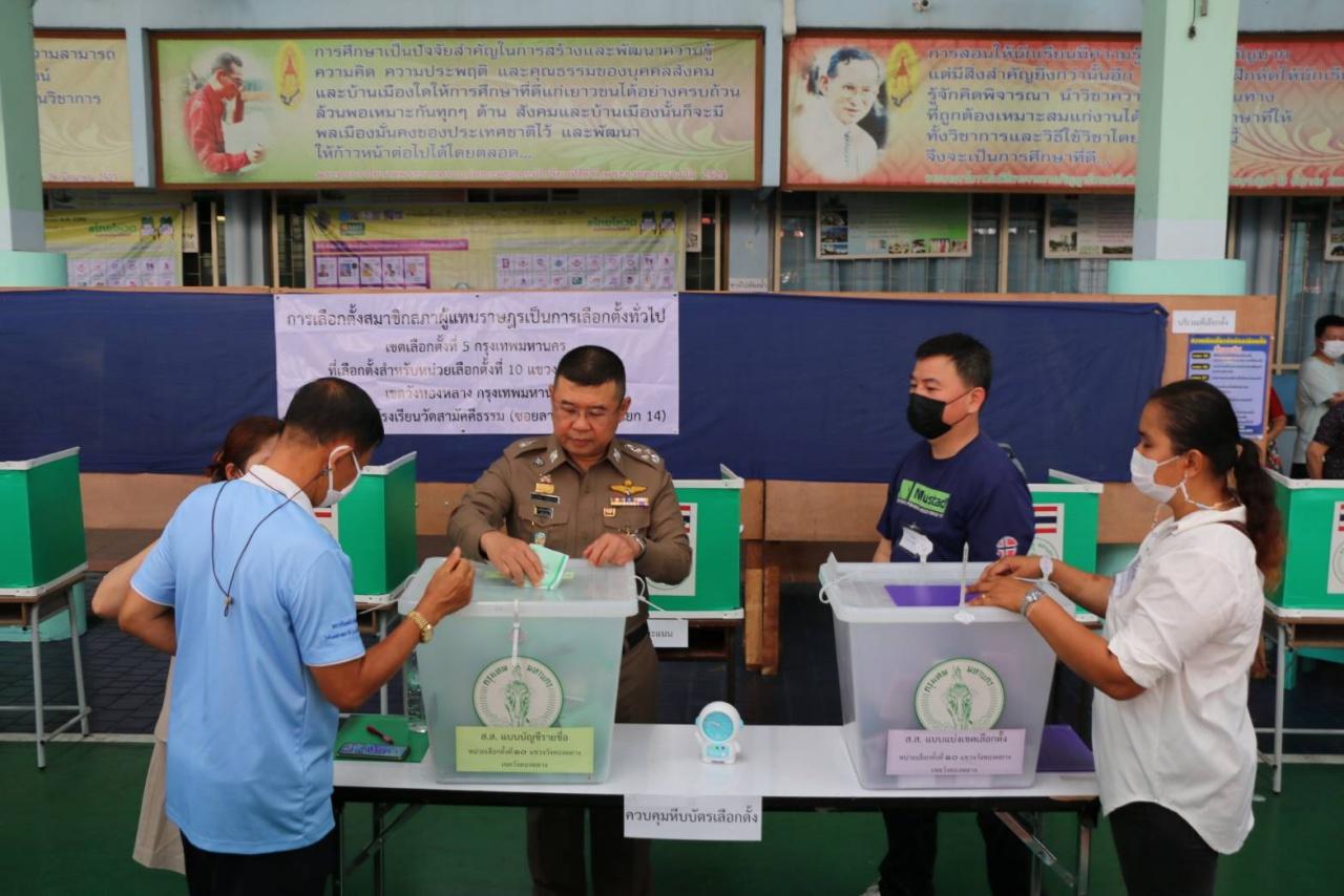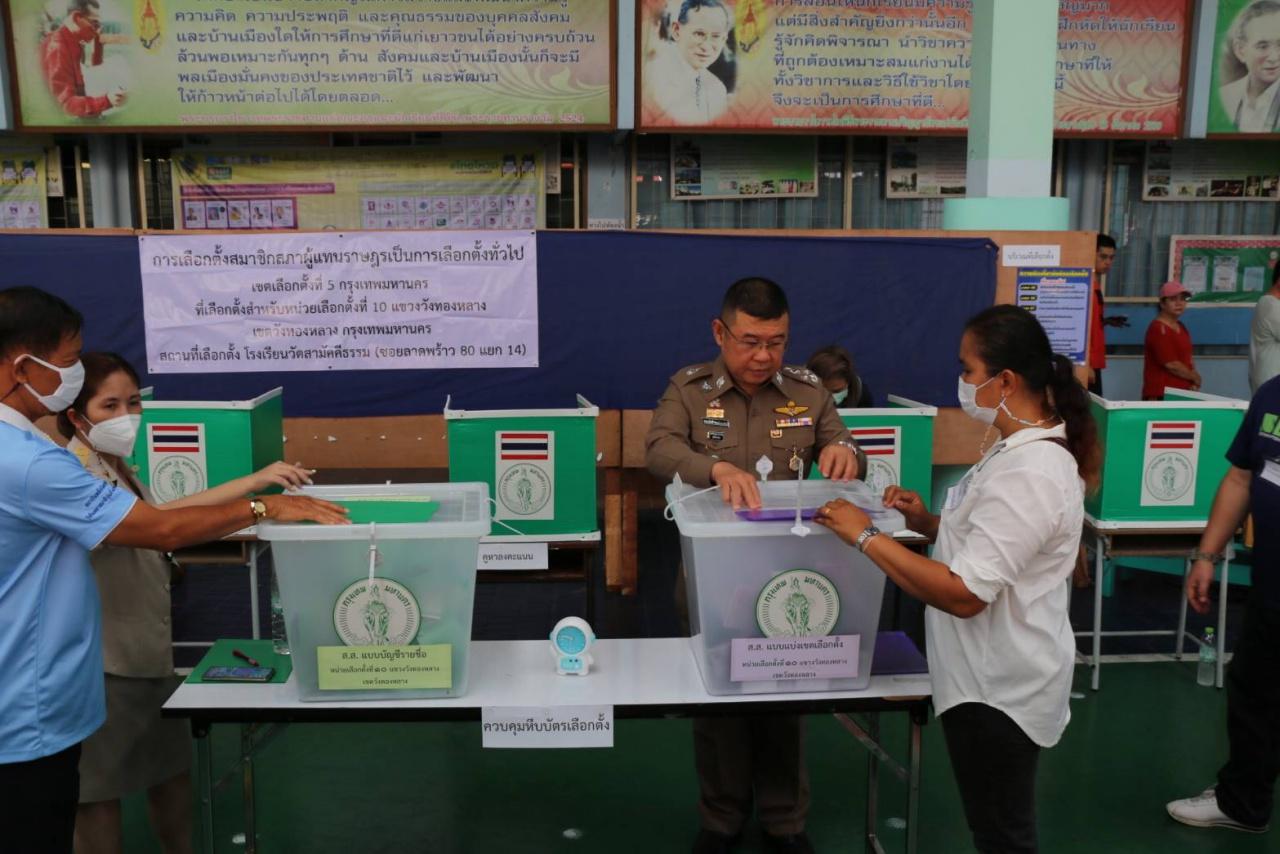ผบ.ตร.ต่อคิวเข้าใช้สิทธิที่เขตเลือกตั้งที่ 5 วัดสามัคคีธรรม วังทองหลาง กำชับตำรวจดูแลการจราจรทั่วประเทศ ฝากเตือนประชาชนให้ระมัดระวังการกระทำที่เข้าข่ายผิดกฎหมายการเลือกตั้ง ทั้งเรื่องการถ่ายภาพบัตรเลือกตั้งที่ลงคะแนนแล้ว หรือการใส่เสื้อโลโก้พรรค เข้าข่ายการโฆษณา