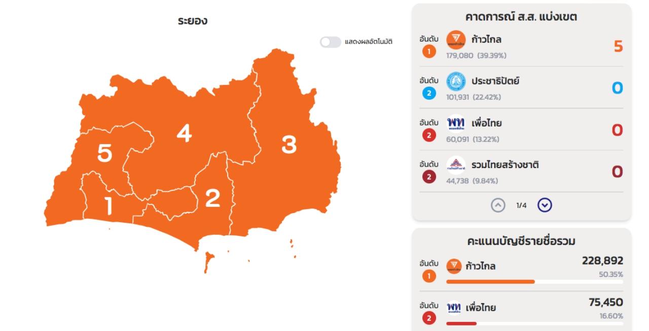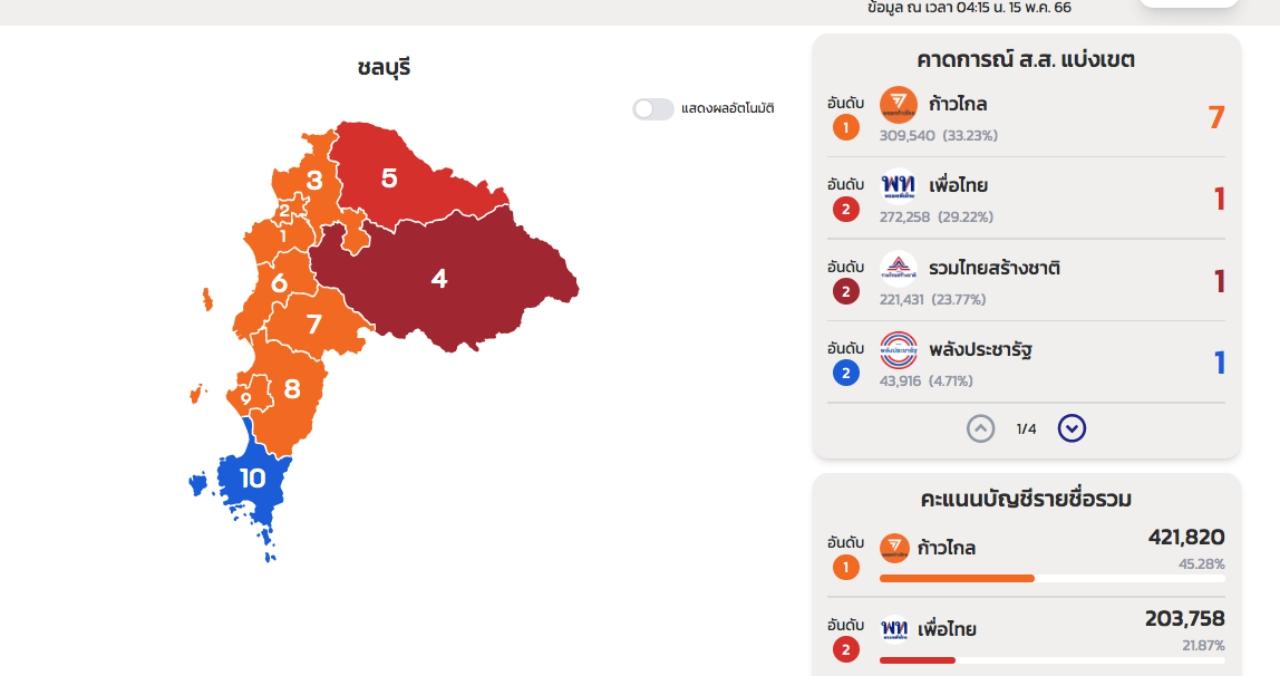 ปรากฏการณ์ พรรคก้าวไกล ล้ม "บ้านใหญ่" ยกจังหวัด ระยอง สมุทรปราการ พ่ายเรียบ ส่วนชลบุรี พรรคเพื่อไทย รวมไทยสร้างชาติ และพลังประชารัฐ ได้แค่อย่างละเขต