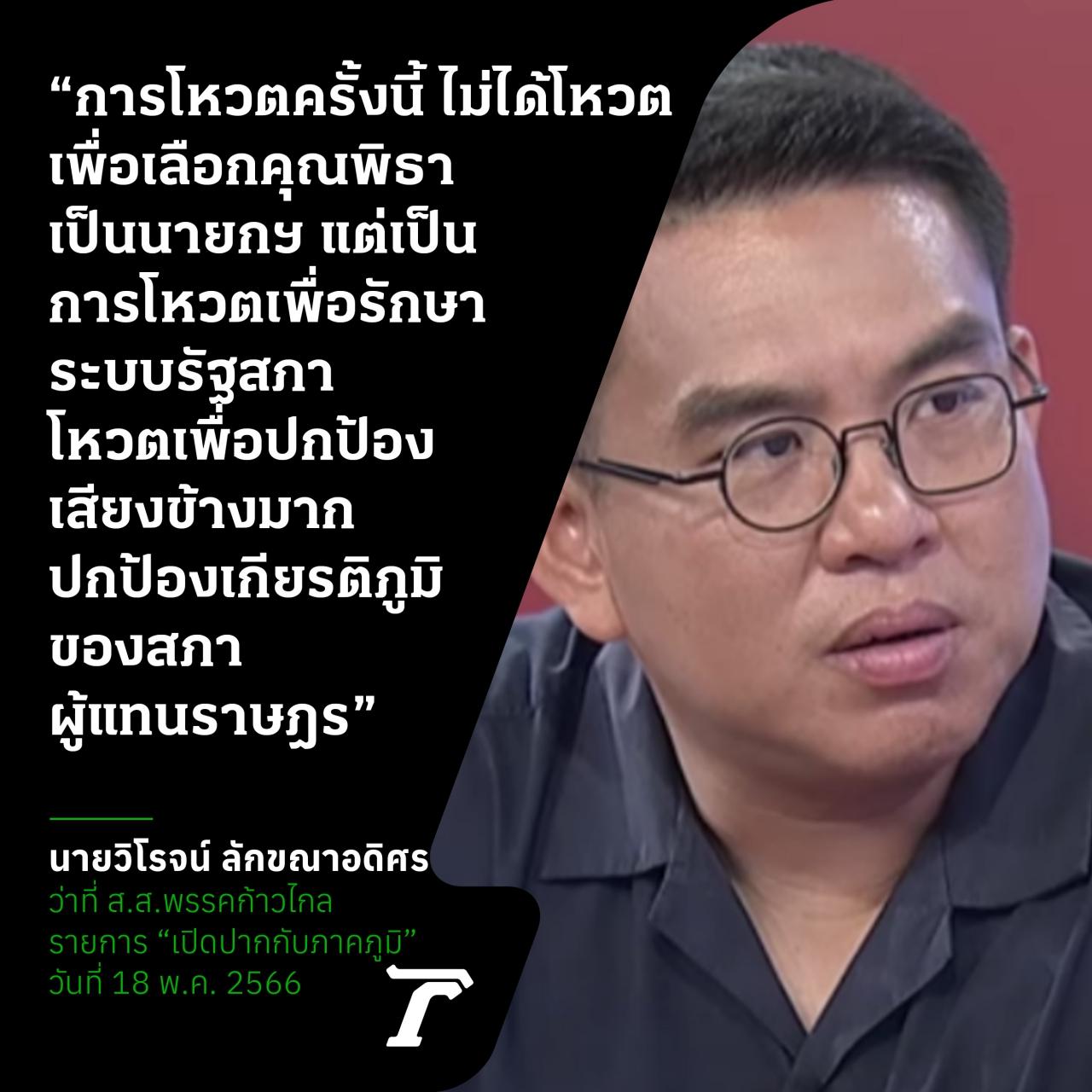 "การโหวตครั้งนี้ ไม่ได้โหวตเพื่อเลือกคุณพิธาเป็นนายกฯ แต่เป็นการโหวตเพื่อรักษาระบบรัฐสภา โหวตเพื่อปกป้องเสียงข้างมาก โหวตเพื่อเกียรติภูมิของสภาผู้แทนราษฎร"