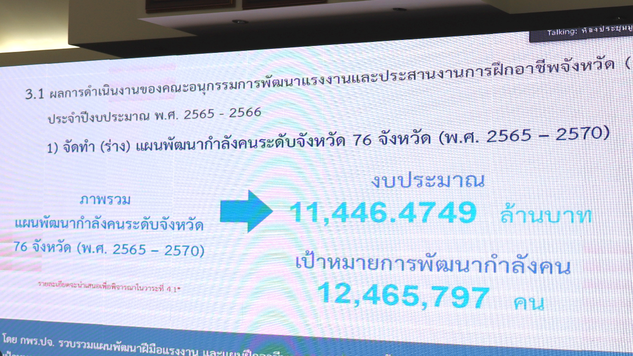 นายบุญชอบ ปลัดกระทรวงแรงงาน กล่าวเสริมว่า กระทรวงแรงงานได้รับมอบหมายให้ดำเนินการพัฒนาแรงงาน ประกอบด้วย การพัฒนาแรงงานและประสานงานการฝึกอาชีพจังหวัด (กพร.ปจ.) การพัฒนาแรงงานและประสานงานการฝึกอาชีพในอุตสาหกรรมเป้าหมาย S-Curve การพัฒนาแรงงานและประสานงานการฝึกอาชีพในอุตสาหกรรมการบินและโลจิสติกส์ ซึ่งปี 2565 มีเป้าหมายพัฒนากำลังคนระดับจังหวัด 870,073 คน ดำเนินการแล้ว 857,762 คน และปี 2566 มีเป้าหมาย 847,372 คน ดำเนินการแล้ว 194,075 คน (ข้อมูล ณ วันที่ 8 มิถุนายน 2566) สามารถพัฒนากำลังคนในกลุ่มของอุตสาหกรรมการเกษตรและเทคโนโลยีชีวภาพได้มากที่สุด รองลงมาคืออุตสาหกรรมท่องเที่ยวกลุ่มรายได้ดีและการท่องเที่ยวเชิงสุขภาพ และอุตสาหกรรมแปรรูปอาหาร ทั้งนี้ ได้เสนอเรื่องพิจารณาประกอบด้วย (ร่าง) แผนพัฒนากำลังคนระดับจังหวัด พ.ศ. 2565-2570 ภายใต้คณะอนุกรรมการพัฒนาแรงงานและประสานงานการฝึกอาชีพจังหวัด (กพร.ปจ.) (ร่าง) แผนพัฒนาแรงงานและประสานงานการฝึกอาชีพในอุตสาหกรรมเป้าหมาย S-Curve (พ.ศ. 2565-2570) และ (ร่าง) คำสั่ง แต่งตั้งอนุกรรมการผู้ทรงคุณวุฒิในคณะอนุกรรมการพัฒนาแรงงานและประสานงานการฝึกอาชีพจังหวัด