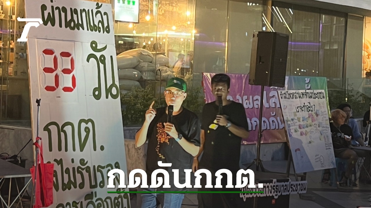 "ม็อบราษฎร" ไฮด์ปาร์ก หน้าหอศิลปฯ จัดกิจกรรม "ทวงผลเลือกตั้ง ร่วมกดดัน กกต." ประกาศผลเลือกตั้ง ส.ส. หลังผ่านมา 33 วัน พรรคแกนนำอย่างก้าวไกล ยังจัดตั้งรัฐบาลไม่ได้ เปรียบเทียบอดีต ยังทำเร็วกว่านี้ได้ ซัดกกต.ทำงานล่าช้ากว่าปกติ