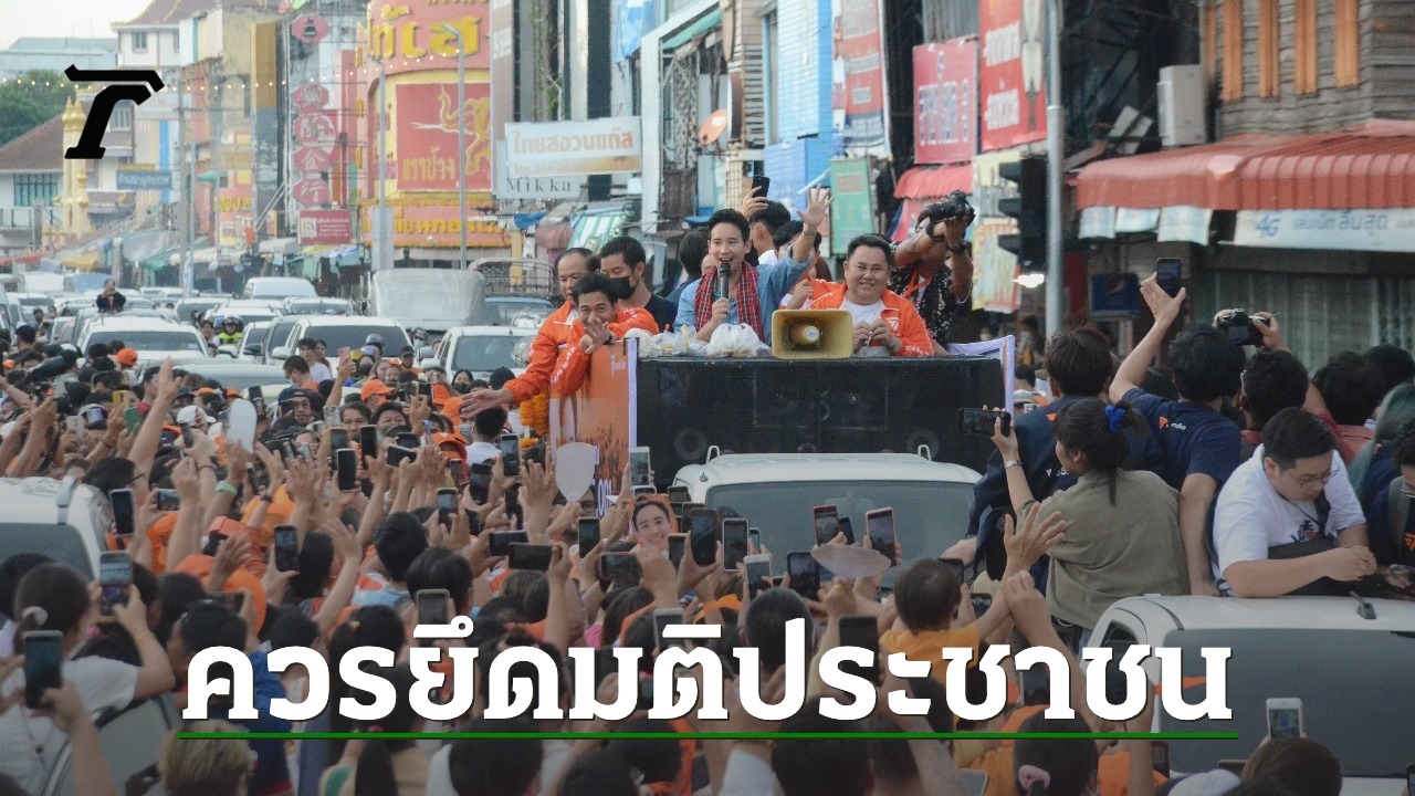 “ทิม พิธา” หัวหน้าพรรคก้าวไกล สักการะย่าโม ลอดซุ้มประตูชุมพล ก่อนขึ้นรถแห่ขอบคุณคะแนนเสียง ตอบปมโหวตนายกฯ ควรจะยึดมติประชาชน ลั่น “ถ้าประชาชนไม่ถอย ผมก็ไม่ถอย”