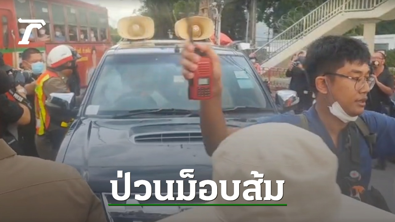 ม็อบส้มโห่ไล่ หนุ่มขับกระบะสีดำ ติดป้ายปฏิวัติประชาธิปไตยก่อนเลือกตั้ง โปรยใบปลิวใกล้ม็อบ พร้อมเปิดเพลงความฝันอันสูงสุด เจ้าหน้าที่ตำรวจต้องเข้าเคลียร์สถานการณ์
