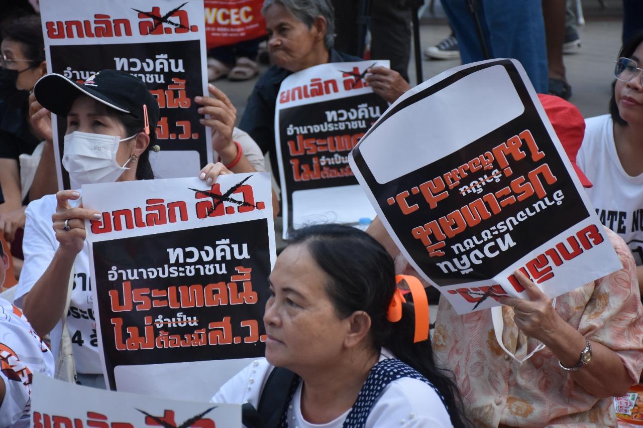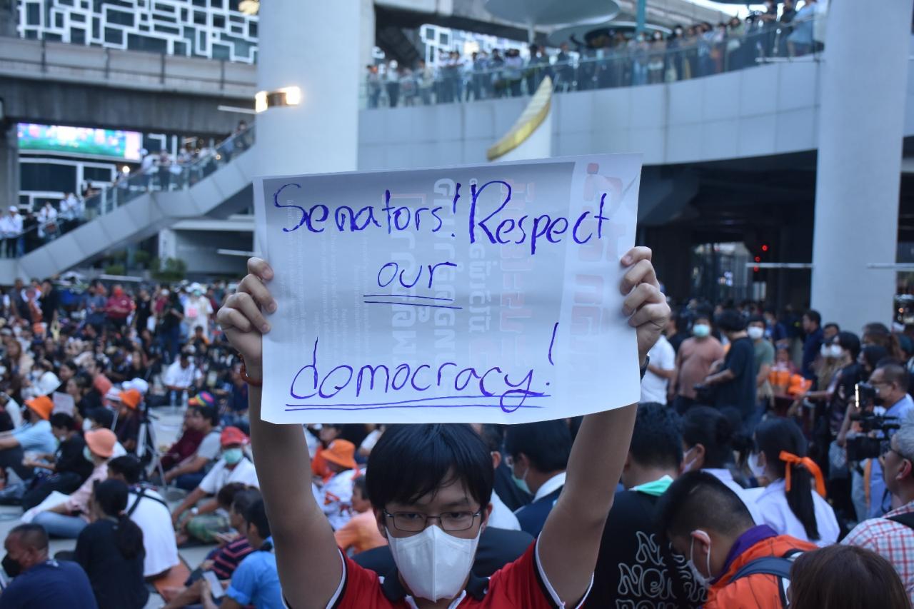 ขณะที่ นายธีรัตม์ พณิชอุดมพัชร์ แกนนำกลุ่ม คณะกรรมการรณรงค์เพื่อรัฐธรรมนูญฉบับประชาชน (ครช.) ขึ้นเวทีปราศรัยเป็นคนแรกเนื้อหาเป็นการโจมตีการทำหน้าที่ของ ส.ว.และรัฐธรรมนูญ 60 ทางด้าน นายชาติชาย แกดำ แกนนำผู้ชุมนุมอีกคน กล่าวว่า ต่อจากวันนี้เป็นต้นไป พี่น้องอาจจะต้องขยับร่างกายเดินมากขึ้น ใครที่อยากเคลื่อนขบวนแล้วเดินไปด้วยกันยกมือขึ้น เบื่อหรือไม่กับการนั่งอยู่เฉยๆ กับการต้องทนดู ส.ว. ที่พูดอะไรก็ไม่รู้เรื่อง พร้อมแจ้งสื่อมวลชนว่าวันนี้ขอให้จับตาจะเป็นจุดเริ่มต้น หลังจากนี้จะมีความเคลื่อนไหวมากมายหลายจุด และจะไม่ใช่ความเคลื่อนไหวแบบปกติอีกต่อไป.