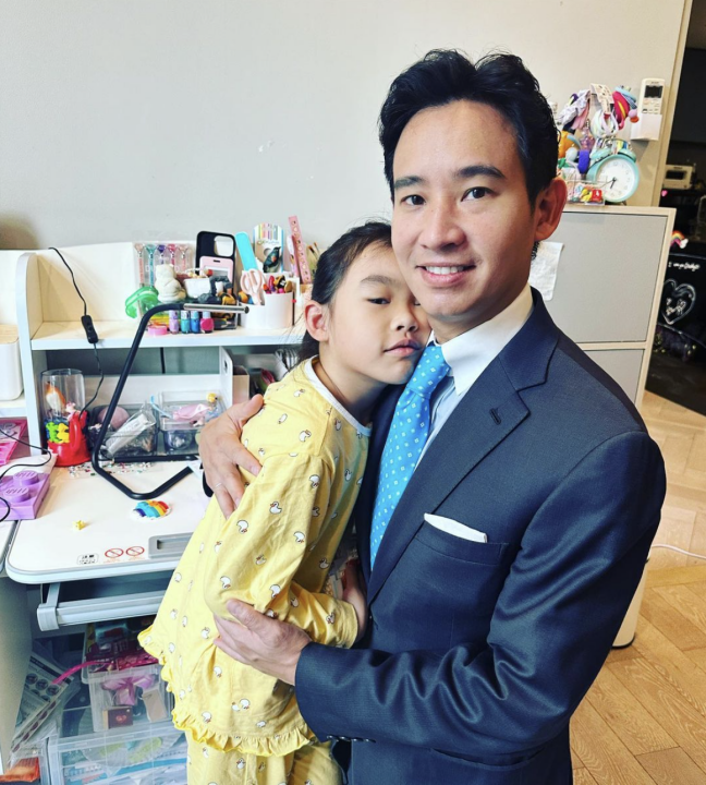 นอกจากนี้ นายพิธา ยังโพสต์ภาพกอดกับน้อง พิพิม ลิ้มเจริญรัตน์ บุตรสาว พร้อมแคปชั่นว่า “โชคดีค่ะคุณพ่อ ขอบคุณครับคุณลูก พ่อจะพยายาม”.