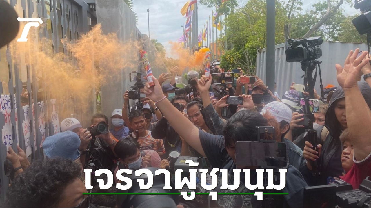 มวลชนจุดพลุควัน ประท้วงโหวตนายกฯ ขณะที่สถานการณ์ยังตึงเครียด "หมออ๋อง" เจรจาผู้ชุมนุมขออยู่จุดที่จัดเตรียมไว้ให้ พร้อมกำชับเจ้าหน้าที่ไม่ให้ประจันหน้า